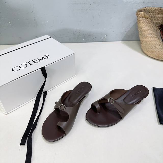 高品质出厂拖鞋360 Cotem 春夏夏款Bahati 手工搭扣牛皮小猫跟凉鞋一字带扣露趾鞋细带高跟拖鞋