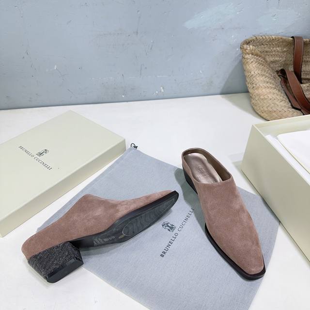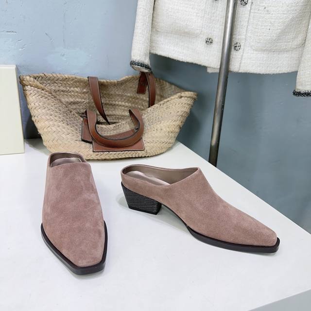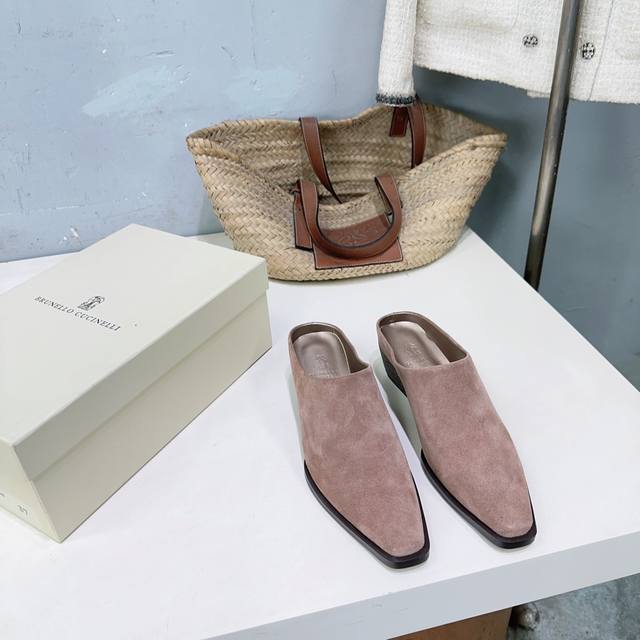 高品质出厂皮里 !小众潮牌 DDD Brunello Cucinelli 25秋冬新品Bc 新款毛毛保暖羊羔毛包头粗跟半拖!怎么会有如此轻便秀气的毛拖呢真的是无论正面看还是侧面看都好看 DDD 极简的粗跟搭配钢珠链条设计复古又有时髦感,光脚穿都是丝滑保暖的,洋气显肤白! DDD 鞋面采用进口牛反绒 DDD 内里垫脚羊皮 羊羔毛 DDD 原版开模大底 DDD 跟高:约4.5Cm DDD 码数:35-42 40 41 42订不退换 DDD 配原版包装 DDD