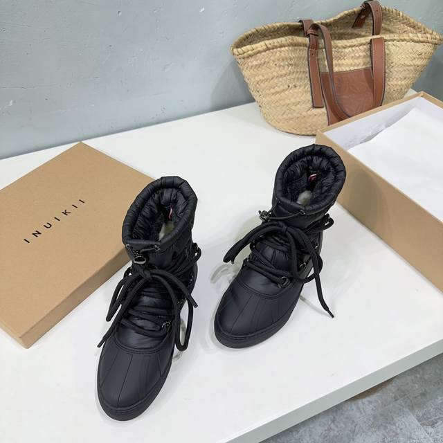 高品质出厂矮 !小众潮牌Inuikii 25Ss秋冬专柜最新款贝壳头休闲时装雪地靴系列!独家款顶级货!强烈推荐!时尚百搭又保暖的一款靴子!而且不容易撞款哦!今冬必备的拉风单品! DDD 鞋面采用原版订做防水尼龙面料,内里垫脚羊毛,舒适保暖! DDD 原版开模一体橡胶防滑大底 DDD 码数:35-40 40定做不退换 DDD 配原版包装 DDD