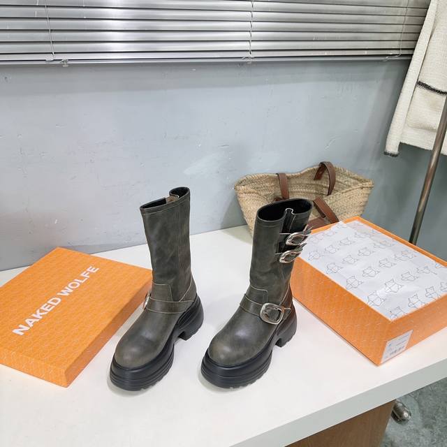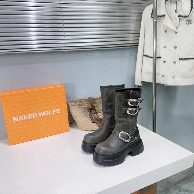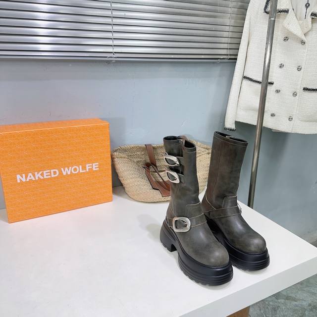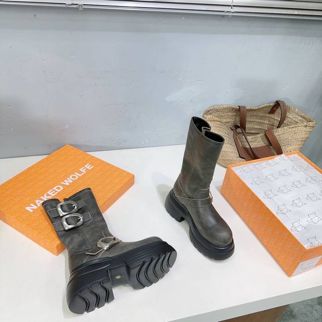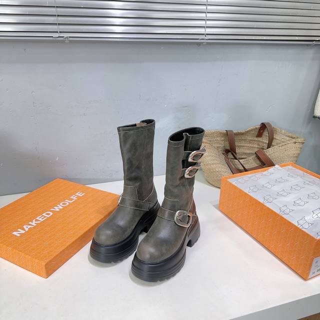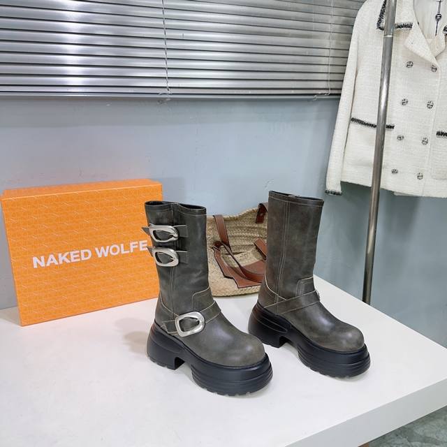 高品质出厂高 !小众潮牌Naked Wolfe24Ss秋冬新款松糕厚底复古扣饰短靴 . 耐科沃是典型的街潮Ip 人间厚底鞋的代表~拉长腿的天花板~ 设计时尚前卫