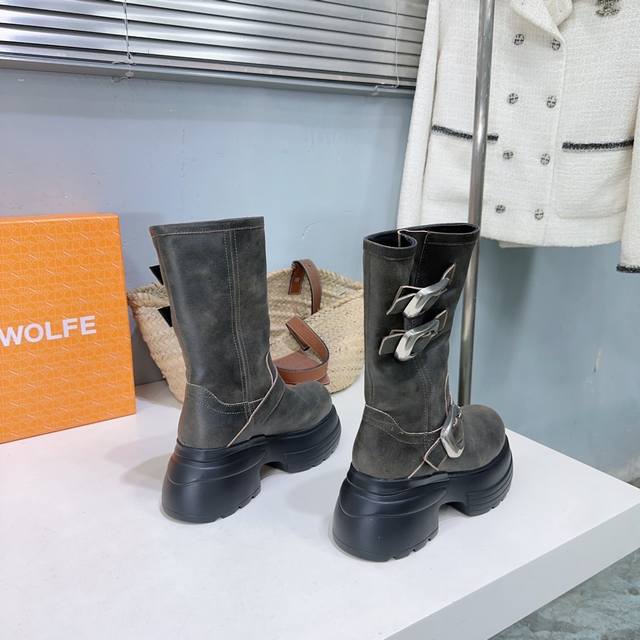 / 高品质出厂高 !小众潮牌Naked Wolfe24Ss秋冬新款松糕厚底复古扣饰短靴 . 耐科沃是典型的街潮Ip 人间厚底鞋的代表~拉长腿的天花板~ 设计时尚前卫