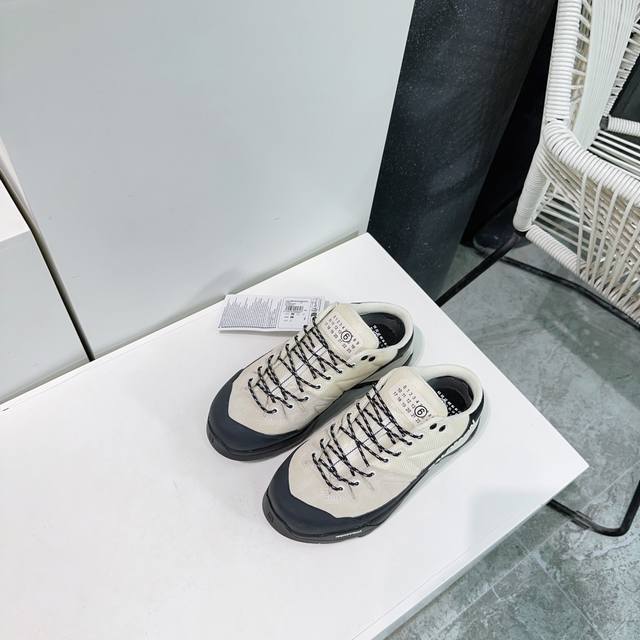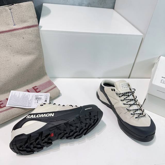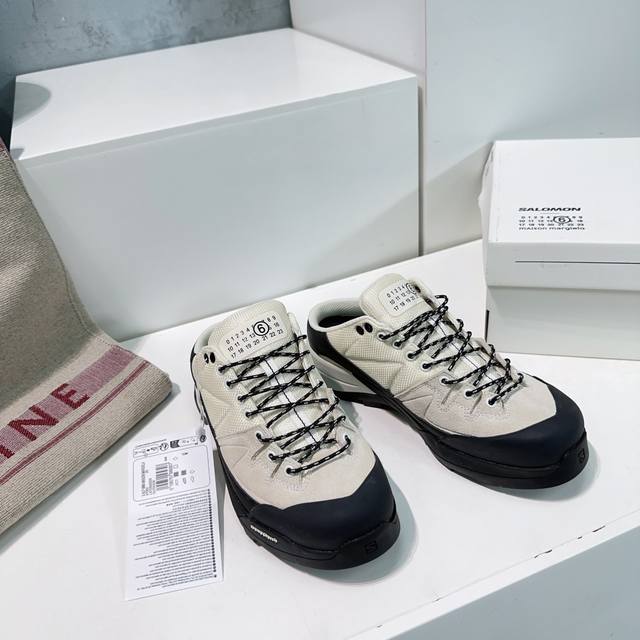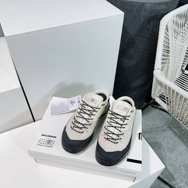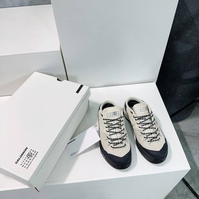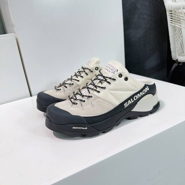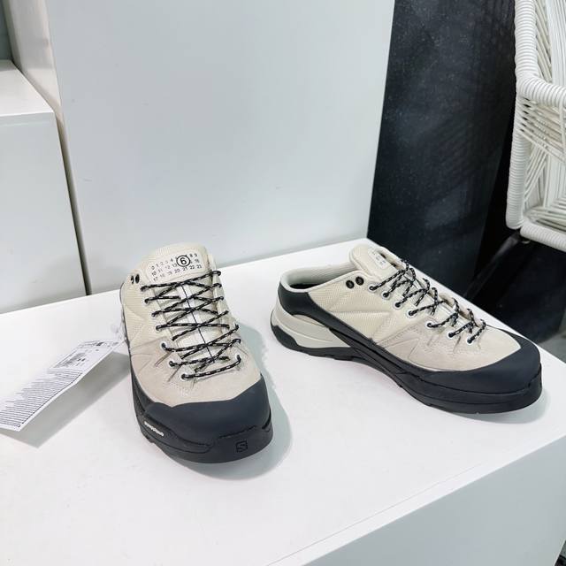 高品质出厂 !小众潮牌情侣款!半拖款!Maisonmargiela&Salomon25春夏Mm6联名款 休闲运动厚底登山德比鞋联名 X-Alp系列 情侣款 户外 休闲 运动鞋 原版购入开发 做货 这款由Mm6全新演绎的X-Aip专注于其空气动力学的外观上,标志性白色与奶油色带来都市风格。鞋舌上的Mm6 数字标志就像一枚手工印章,与Salomon大胆而高科技的Logo相得益彰。另一双则以纯粹的黑色打造,突出富质感的细节,标志性运动鞋被提炼为新的都市经典! 原版进口牛皮+透气网面 内里原版进口透气网里 原版开