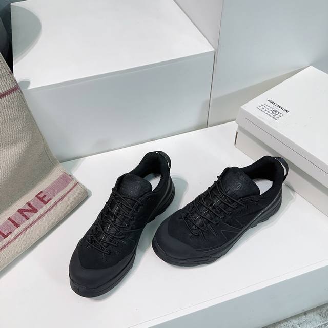 高品质出厂 !小众潮牌情侣款!Maisonmargiela&Salomon25春夏Mm6联名款 休闲运动厚底登山德比鞋联名 X-Alp系列 情侣款 户外 休闲 运动鞋 原版购入开发 做货 这款由Mm6全新演绎的X-Aip专注于其空气动力学的外观上,标志性白色与奶油色带来都市风格。鞋舌上的Mm6 数字标志就像一枚手工印章,与Salomon大胆而高科技的Logo相得益彰。另一双则以纯粹的黑色打造,突出富质感的细节,标志性运动鞋被提炼为新的都市经典! 原版进口牛皮+透气网面 内里原版进口透气网里 原版开模防滑橡