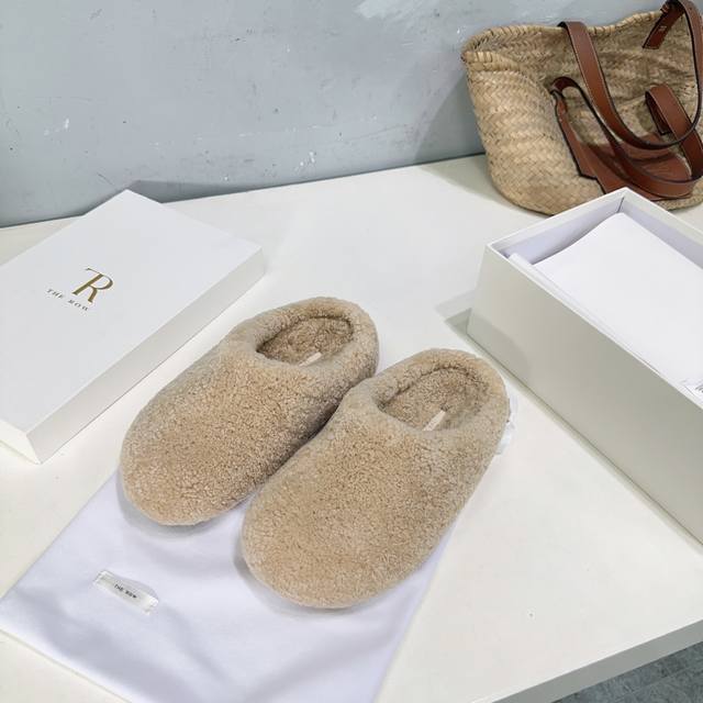 / 高品质出厂 !小众潮牌新色!The Row25Ss秋冬新款保暖懒人羊羔毛包头平底拖鞋 四季时尚休闲潮流简约深口穆勒拖 ,这款半拖适合四季必备神器随意搭配牛仔裤,