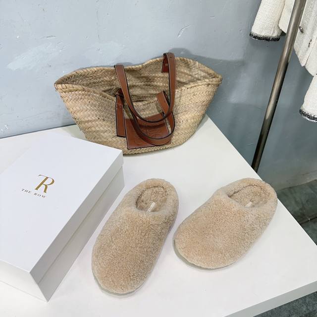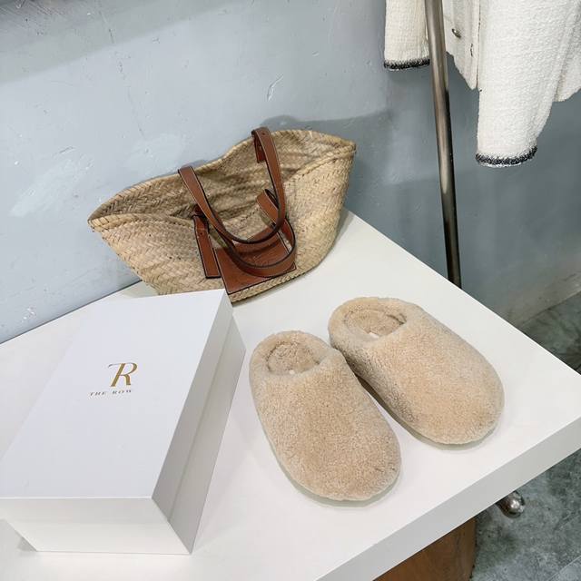 高品质出厂 !小众潮牌新色!The Row25Ss秋冬新款保暖懒人羊羔毛包头平底拖鞋 四季时尚休闲潮流简约深口穆勒拖 ,这款半拖适合四季必备神器随意搭配牛仔裤,瑜伽裤,风衣都非常时尚洋气 ,上脚就像踩感一样非常舒适Q弹 !保暖又时髦!秋冬必备神器! 鞋面采用保真羊羔毛 内里垫脚保真羊羔毛 原版开模橡胶大底 码数:35-40 40定做不退换 配原版包装