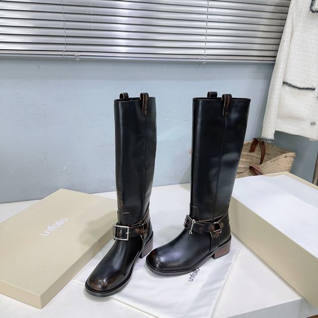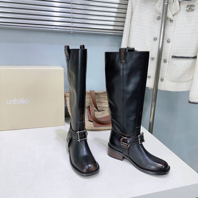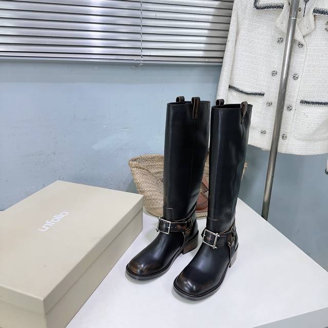 高品质出厂 !小众潮牌 Unfolio 25Ss秋冬新品复古圆头一脚蹬粗跟长靴骑士靴! DDD 复古潮靴 一脚蹬进时尚圈 DDD 小牛皮质感自带高级滤镜 光面简易百搭 中筒版型适配所有风格 上脚瞬间解锁酷飒氛围感 无论是搭裙装还是裤装 都能让你在潮流赛道上C位出圈 轻松拿捏秋冬时髦话语权~ DDD 鞋面采用进口小牛皮 DDD 内里垫脚羊皮 DDD 原版开模开模大底 DDD 码数:35-41 40.41定不退换 DDD 配原版包装 DDD