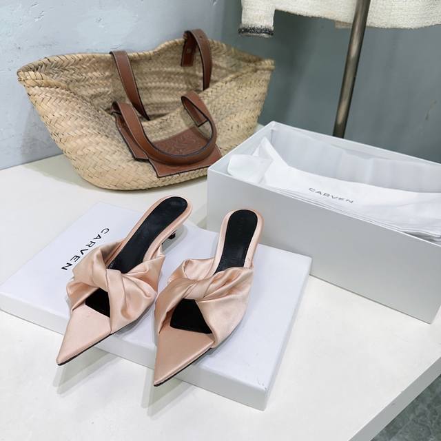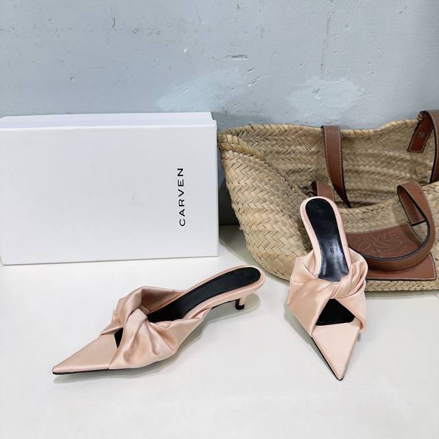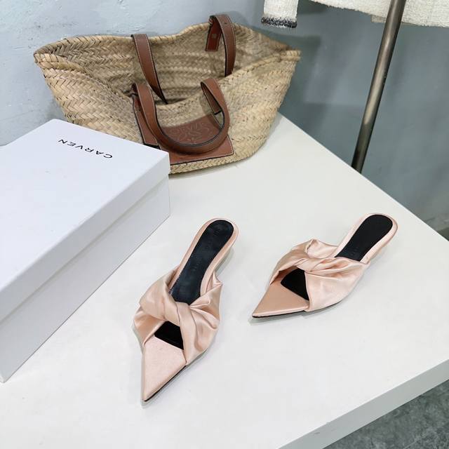 / 高品质出厂 !小众潮牌Carven26春夏新款简易复古真丝绸缎麻花尖头猫跟拖鞋凉鞋!春夏季节搭配裙裤都非常好看!简单利落的设计很适合日常穿着,后空设计,慵懒随性