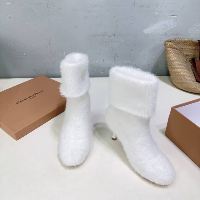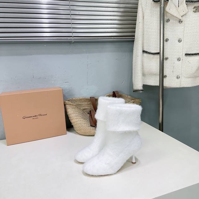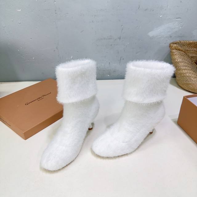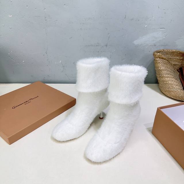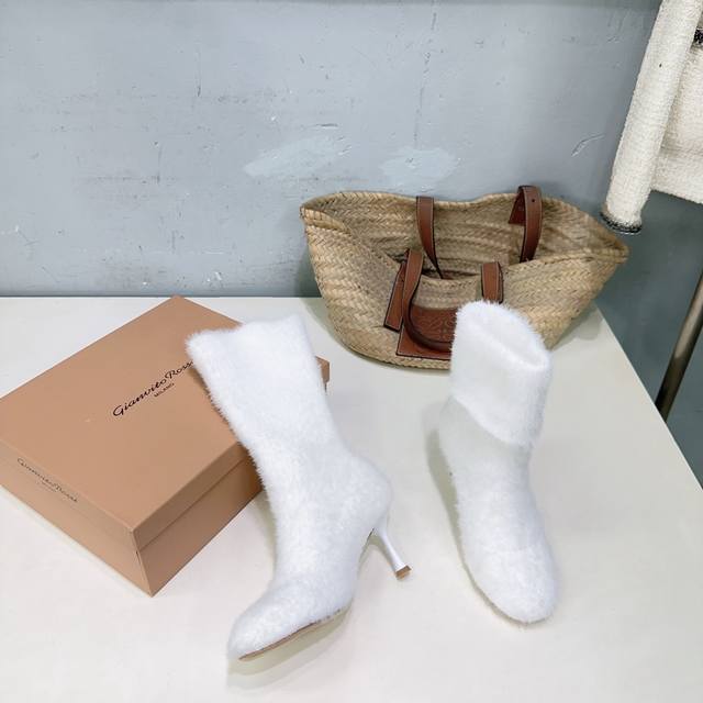 高品质出厂 !小众潮牌Gianvito Rossi 25Ss秋冬新品针织高跟毛线袜子靴圆头短靴! 当针织的温柔肌理邂逅高跟的利落锋芒, 袜子靴便以独特美学 重新定义秋冬足部时尚。 精选 48 针精梳棉针织面料 如第二层肌肤般紧密贴合脚踝与小腿 随步态自然舒展却不紧绷 行走时的细微褶皱更添慵懒质感。 鞋跟是设计的灵魂所在 7Cm细高跟采用哑光金属涂层 从靴筒延伸至鞋底的流畅线条 既保留了细高跟的优雅气场 又通过加宽鞋跟基底增强稳定性。 鞋头圆润弧度搭配同色系针织包边 弱化了高跟的凌厉感 增添几分复古温柔。