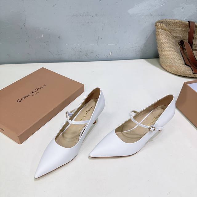 高品质出厂 !小众潮牌Gianvito Rossi 25Ss秋冬新款罗西 Gr尖头高跟单鞋! 鞋面采用混种羊皮,质感柔软细腻,自带奢华高级感,同时为整体造型增添了一份复古优雅气质。经典尖头款式在展现优雅气质! 脚背扣带设计为整体简约增添了亮点,提升了鞋子的时尚感与独特性,使鞋子不会显得单调,起到了装饰作用,让鞋子的细节更加丰富。 鞋面采用进口混种羊皮 内里垫脚羊皮 意大利进口原色真皮大底 跟高:7Cm 码数:35-42 40.41.42定不退换 配原版包装