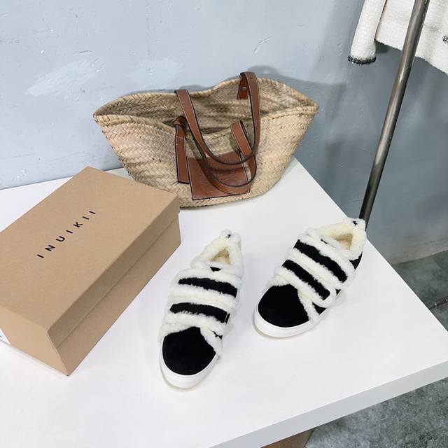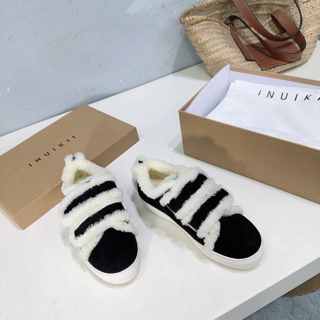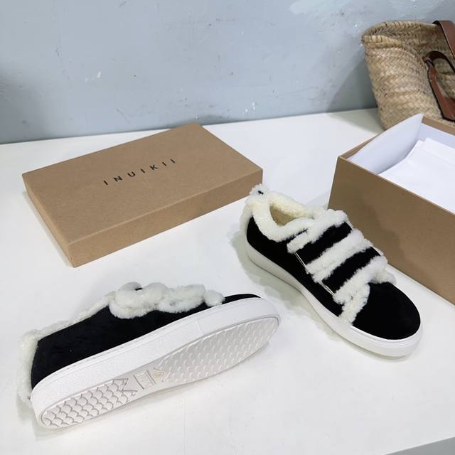 高品质出厂 !小众潮牌Inuikii25Ss秋冬新款女士羊皮毛一体保暖羊毛里魔术贴乐福鞋休闲鞋! DDD 原单最高版本,Zp对比做货!欢迎任意对比! DDD 鞋面精选进口翻毛皮材质,保留真皮原有的细腻质感,内里采用顶级羊皮毛一体设计有效隔绝外界寒冷,约2.5厘米高度的保温橡胶鞋底,经过精心设计与多次测试,既保证了拖鞋的轻盈感,又提供了良好的支撑与防滑性能! DDD 鞋面采用进口牛反绒 DDD 内里垫脚进口羊毛皮毛一体 DDD 原版开模橡胶大底 轻便舒适防滑 DDD 码数:35-40 40定不退换 DDD