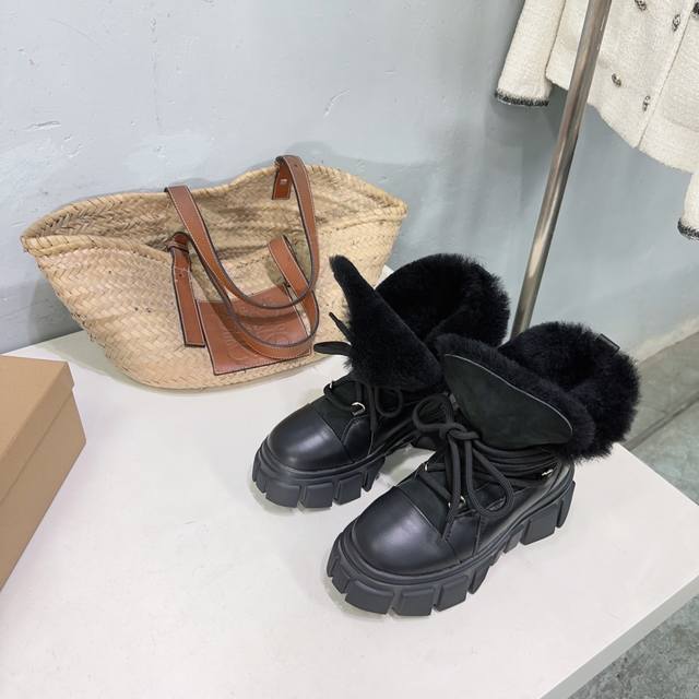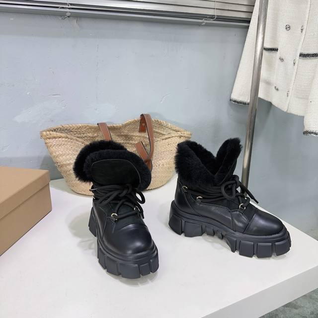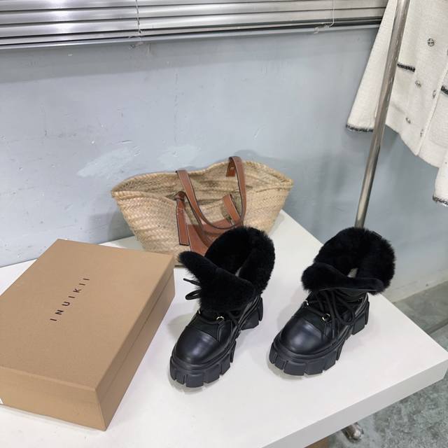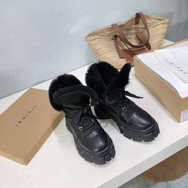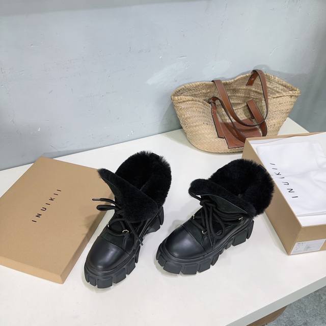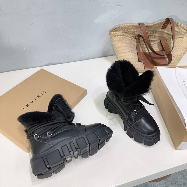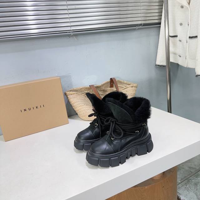/ 高品质出厂 !小众潮牌Inuikil25Ss秋冬专柜最新休闲时装松糕厚底羊毛雪地靴系带短靴!独家款顶级货!强烈推荐!时尚百搭又保暖的一款靴子!而且不容易撞款哦!