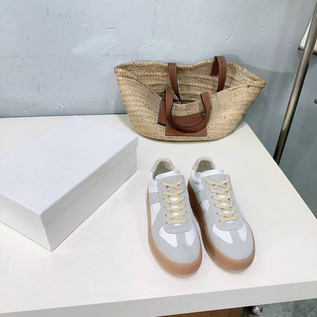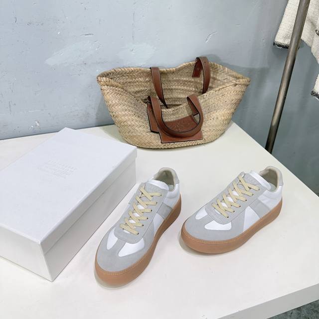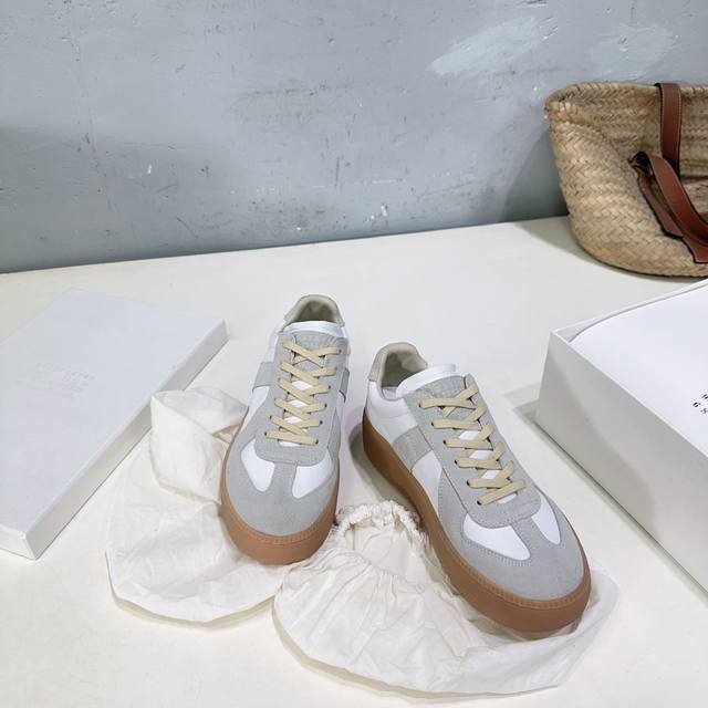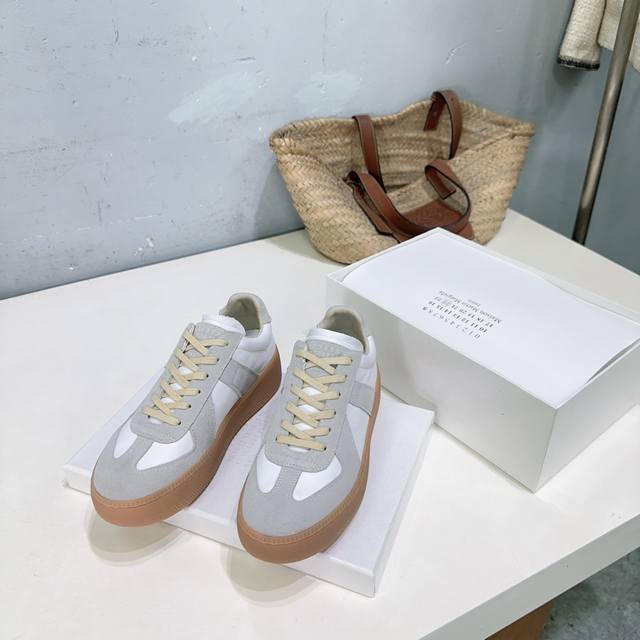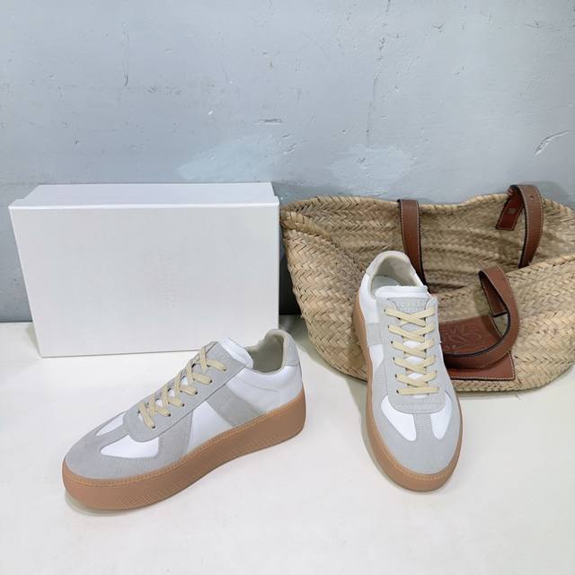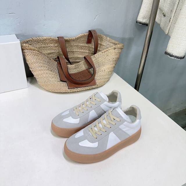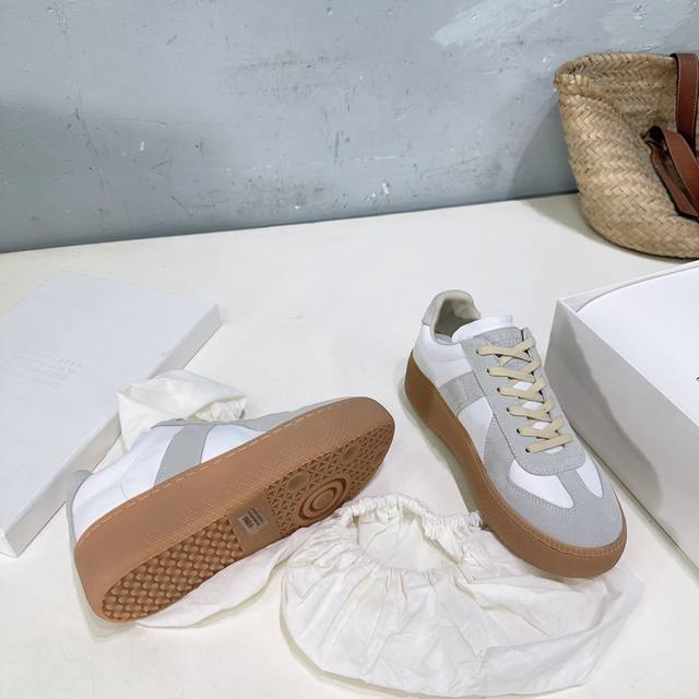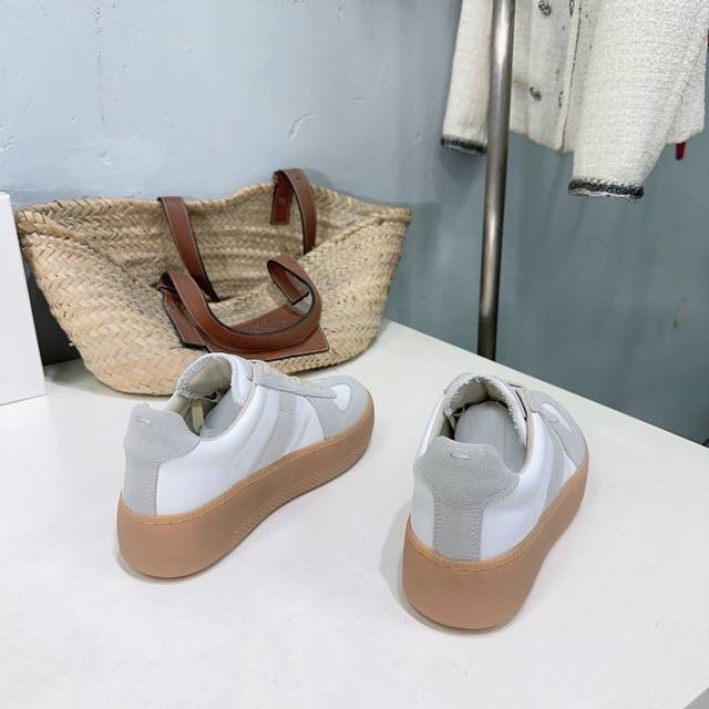 高品质出厂 !小众潮牌Maison Margiela 25Ss秋冬新品Mm6厚底德训鞋阿甘休闲鞋饼干鞋! Mm6厚底德训鞋来啦 太戳时髦点了 色调柔和又高级 厚底设计悄悄增高还特显腿细 不管搭休闲装还是轻复古风 都能一键解锁随性又亮眼的造型~ 搭配马吉拉新出的厚底德训,让我直接比例拉高的同时,也给原本成熟的老钱风增加一丝活力,别看鞋底厚厚的,鞋子意外的轻 在城市里航行一整天也不累 鞋面采用小牛皮拼接牛反绒 内里垫脚羊皮 原版开模橡胶大底 厚底:3Cm 码数:35-40 40定不退换 配原版包装