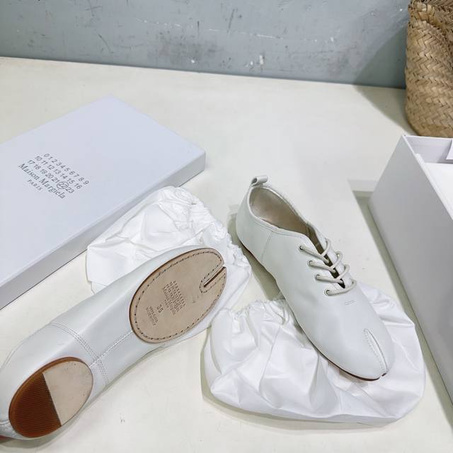 高品质出厂 !小众潮牌Maisonmargiela|26春夏新品Mm6马吉拉 Tabi分趾系带芭蕾舞鞋~ DDD 刻着“时髦”两字的芭蕾鞋 DDD 26新款在经典的基础上又做了升级 DDD 分趾开衩位置真的是考究工艺的细节点 DDD 花费了超多时间去保证鞋子的舒适度 DDD 上脚既舒适又百搭 完全无需磨合期 DDD 依旧采用进口全牛皮材质 一个字“软” DDD 肉眼可见的细腻质感 穿上完全不想脱下来 DDD 光脚穿也不会有异物感 赶紧人手一双吧! DDD 鞋面采用绵羊皮 爆裂金属皮 植鞣打蜡牛皮 DDD
