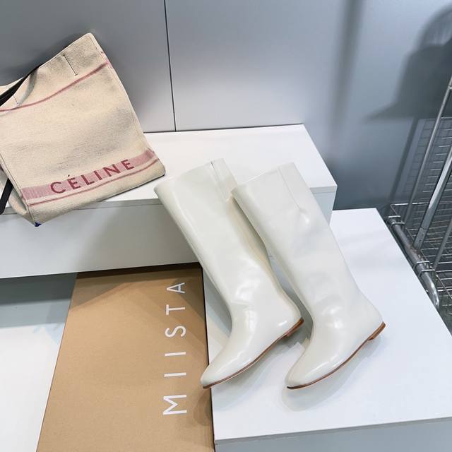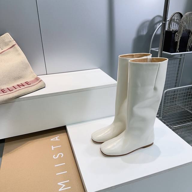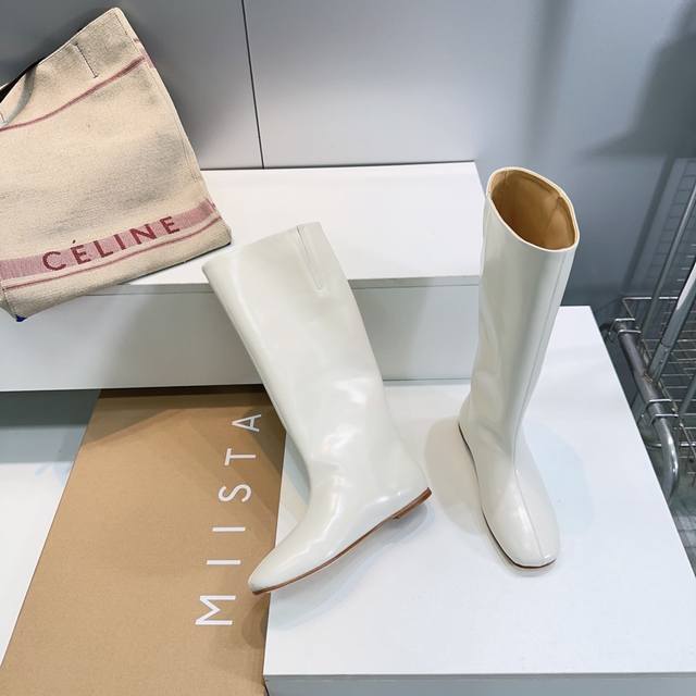 高品质出厂 !小众潮牌Miista25Ss秋冬新款直筒一脚蹬平底长靴极简风骑士靴! 这种看似简单的款式超级百搭,无论搭配什么颜色衣服都非常棒,简单款不怕多好穿又好看 随搭都散发出帅气的法式街头风 这双Miist 靴子真是怎么搭怎么好看 每次搭完一身不知道穿什么鞋,选它都不会错 配裙子好看 配裤子也好看,不愧是好多人推荐过的靴型 穿上会显得小腿超细 鞋面采用原版定制油蜡牛皮 内里垫脚水染牛皮 意大利进口真皮大底 码数:35-41 40.41定不退换 配原版包装