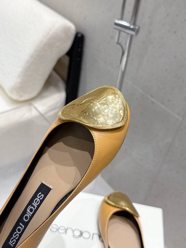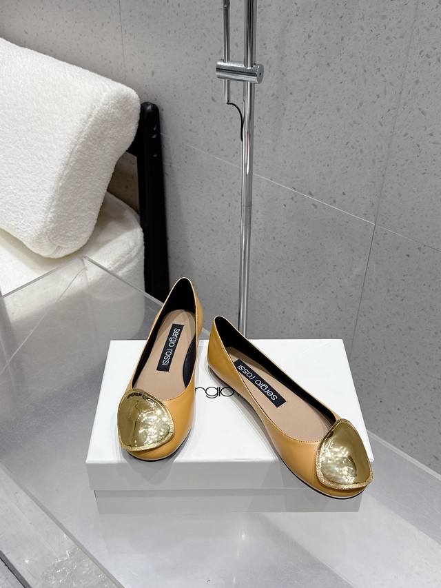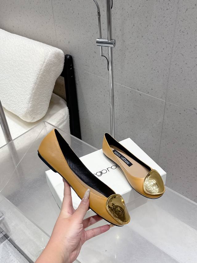 高品质出厂 小众潮牌Sergio Rossi 25秋冬新品黄金片五金扣配饰平底圆头玛丽珍单鞋!哇塞,发现了一双绝美凉鞋!来自意大利鞋王品牌!真的是一眼就爱上了。 鞋面上有一块精致的黄金片装饰!,Bingbing真的超级优雅贵气!,感觉穿上它自己就是女王本王,。 镶嵌的方式也很低调,不会像一般的水晶鞋那么油腻。 真的超级百搭呀, 可以说没有配不了裙子。就算是配牛仔 裤短裤,也能瞬间提升整体的时尚感,让你成为人群中的焦点。 逛街 上班穿它都毫无压力。 鞋面采用混种羊皮 内里垫脚羊皮 意大利进口真皮大底+橡胶注