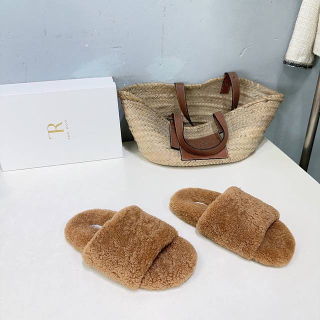 / 高品质出厂 !小众潮牌The Row 25 秋冬新品羊羔毛平底毛毛拖鞋这季节美鞋太多这款毛拖真的是让我无法自拔!极简百搭!真太可爱了~ DDD 毛茸茸的羊毛是选