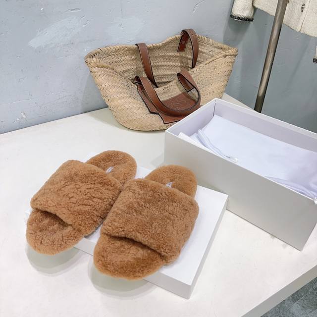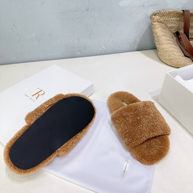 高品质出厂 !小众潮牌The Row 25 秋冬新品羊羔毛平底毛毛拖鞋这季节美鞋太多这款毛拖真的是让我无法自拔!极简百搭!真太可爱了~ DDD 毛茸茸的羊毛是选