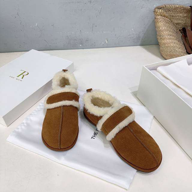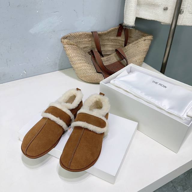 高品质出厂 !小众潮牌The Row 25Ss秋冬新款保暖羊羔毛魔术贴包子鞋羊毛鞋! DDD 有谁能拒绝这样一双百搭又保暖的雪地靴啊!入秋最爱的羊毛鞋 一定要分享给大家! DDD 出街穿它随便搭配风衣牛仔西裤短裙等等都是非常好搭的!独立开模鞋楦 支撑那个鞋型一看就对头 鞋子不板脚 弯曲跟脚不掉跟就属于这种 也不用担心过软没有支撑 DDD 侧面和鞋子一字带魔术贴侧面是完全可以看到那个弧度的,所以不挑任何脚型! DDD 鞋面采用牛反绒 DDD 羊毛垫脚内里 DDD 原版开模橡胶大底 DDD 码数:35-41