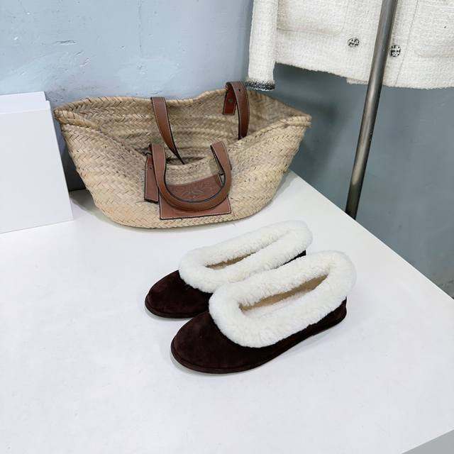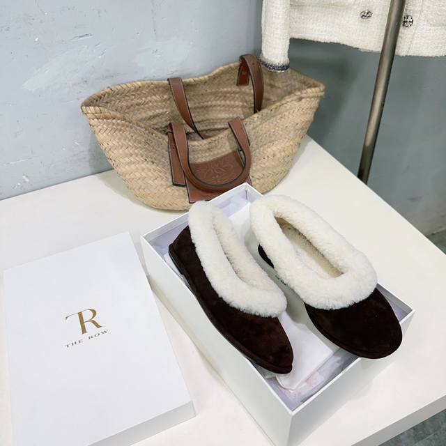 高品质出厂 !小众潮牌The Row 25Ss秋冬新款羊羔毛玛丽珍平底单鞋保暖毛毛包子鞋! DDD 鞋面采用纯麂皮,时尚又温柔!内里垫脚采用柔软羊羔毛,整体鞋子就是一个字“软”舒服!就是一整个休闲风格,鞋子宽松版型,可塑性非常强!对待所有脚型非常友好!秋冬搭配必备单品,保暖舒适又好搭配! DDD 鞋面采用牛反绒 DDD 内里垫脚羊毛 DDD 原版开模橡胶大底 DDD 码数:35-41 4041定做不退换 DDD 配原版包装 DDD