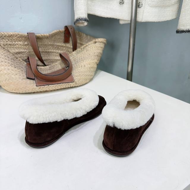 高品质出厂 !小众潮牌The Row 25Ss秋冬新款羊羔毛玛丽珍平底单鞋保暖毛毛包子鞋! 鞋面采用纯麂皮,时尚又温柔!内里垫脚采用柔软羊羔毛,整体鞋子就是一个