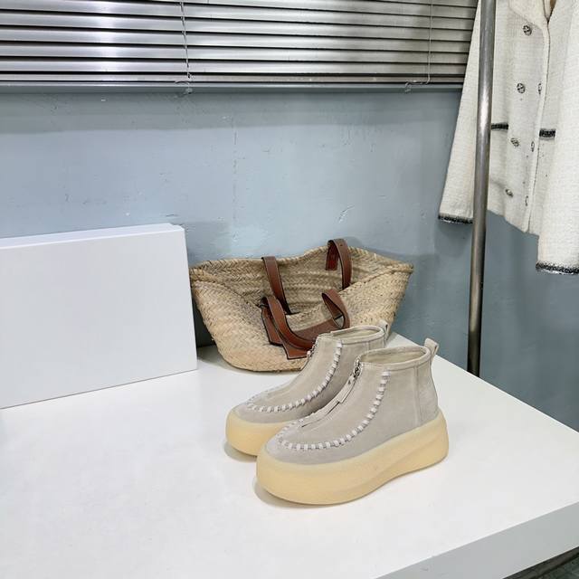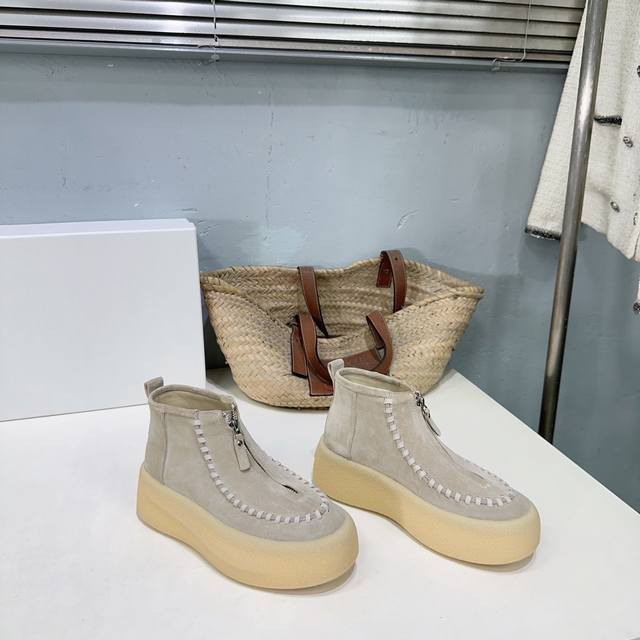 / 高品质出厂 !小众潮牌The Row2025Ss秋冬松糕厚底前拉链短靴原版购入一比一套楦开发!超多明星博主示范前拉链设计,经典不过时!简约时髦,穿脱超级方便,而