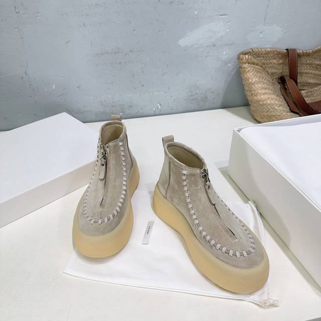 高品质出厂 !小众潮牌The Row2025Ss秋冬松糕厚底前拉链短靴原版购入一比一套楦开发!超多明星博主示范前拉链设计,经典不过时!简约时髦,穿脱超级方便,而