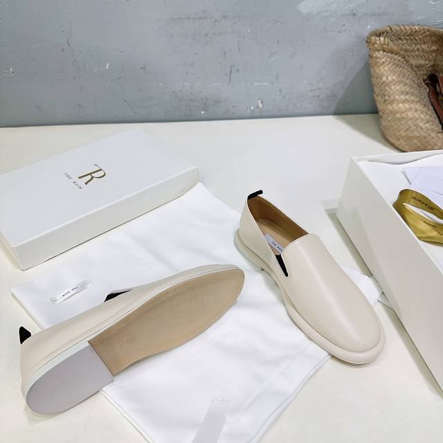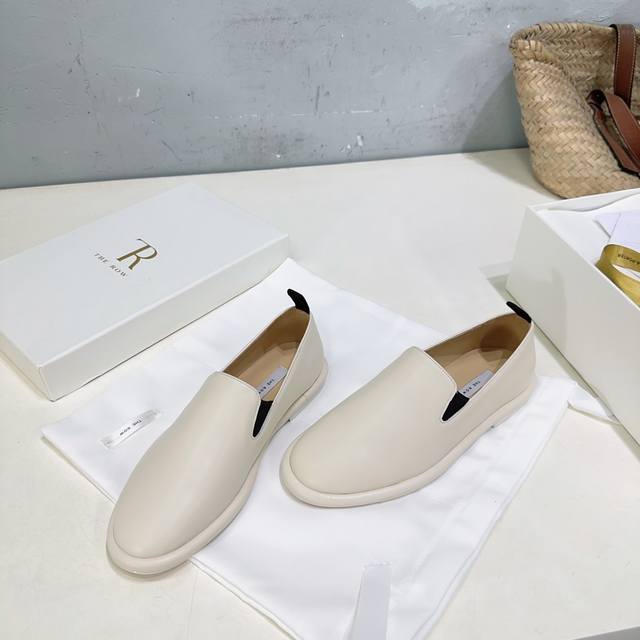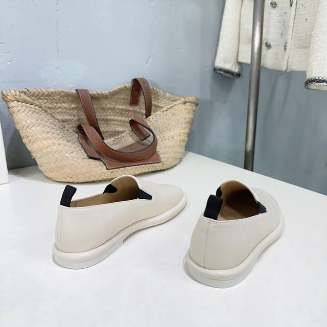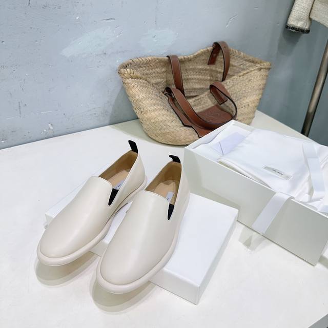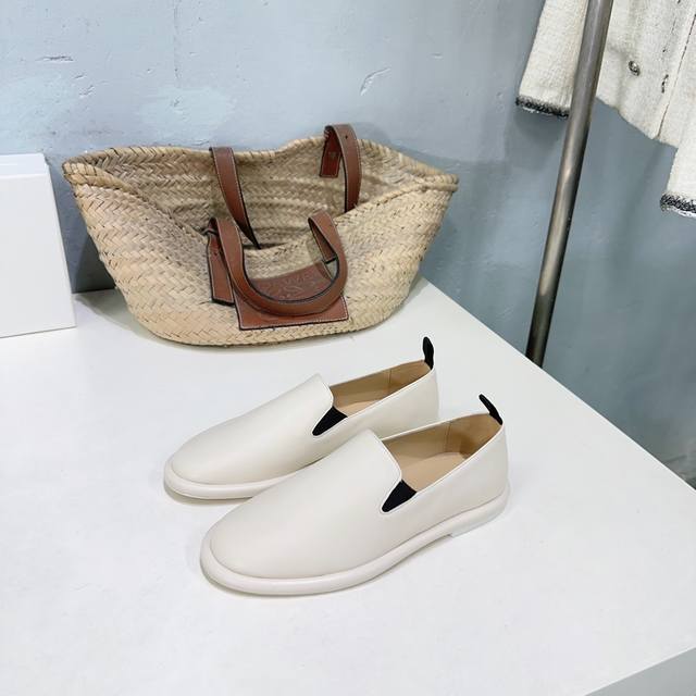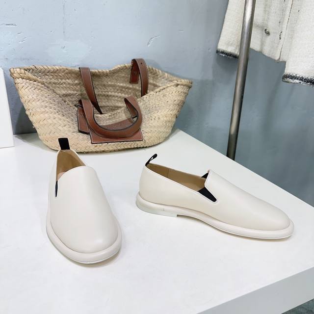 高品质出厂 !小众潮牌Therow25Ss秋冬新圆头平底乐福鞋品质控看过来,无可挑剔的一款乐福鞋!!! 黑白杏三色,延续了一贯极简风格,无内衬结构使得鞋身极其轻便贴肤,整双鞋子看似简单其实工艺很难。采用全皮套包制作工艺,老师傅制作,超级废料,上脚裸穿舒适柔软亲肤,脚感方面完全不可担心,好穿是必须的,穿若无穿的上脚体验,穿上就不想脱的款。 软到心坎!!巨软不磨脚,今年力荐的一款乐福鞋,非常简约百搭,舒适度超好~ 如果你想要一双一年四季都能穿的,舒服百搭,高品质的单鞋,那就闭眼冲吧~ 鞋面采用混种羊皮 内里垫