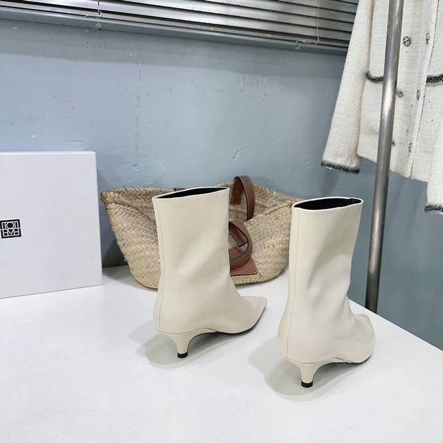 高品质出厂 !小众潮牌Toteme 25Ss秋冬简易猫跟尖头短靴!极简主义风格,复古又高级!简约又大气,属于非常耐看的款式! 一如既往的把持着自己的极简高级 一
