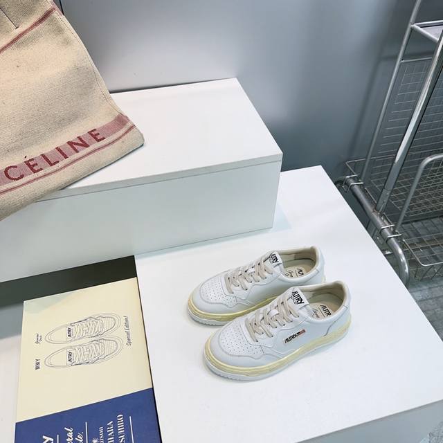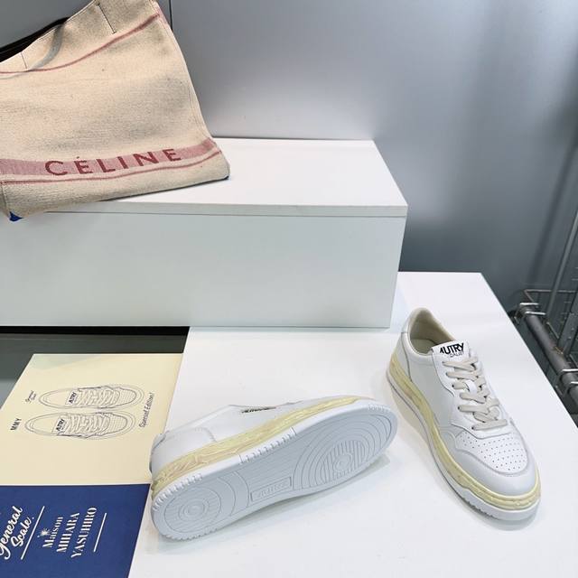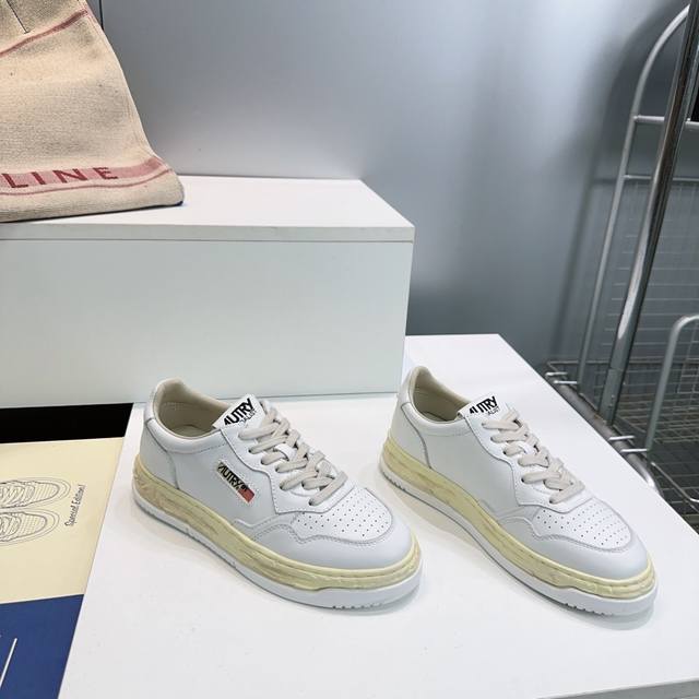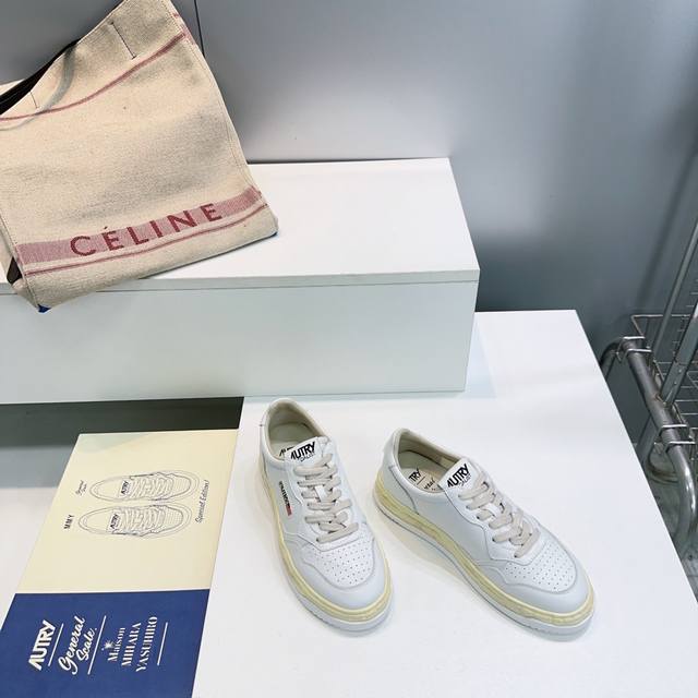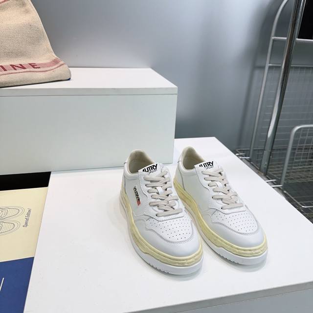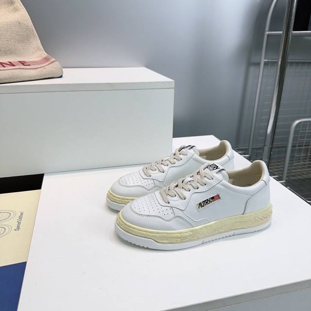 高品质出厂 !顶级品质 DDD 情侣款!Autry 联名款纯原 26春夏最值得入的的复古 情侣款 脏脏 小白鞋板鞋! DDD 一双被韩国欧尼们穿火的小白鞋,相信很多热爱小白鞋的潮流人士对这个品牌应该都不会陌生,刘雯穿过、车静媛穿过、好多明星博主都穿过 DDD Autry的每一款鞋都有着简单线条和内敛细节设计,厚实发黄的鞋底和鞋面标签带是它的经典标识,鞋头的设计也比较立体,不会很扁,显得整个鞋型都非常好看,做旧发黄的鞋底有3.5厘米的厚度,很有复古的味道,但是一点也不会硬,上脚柔软有弹力,我们这款是小牛皮面