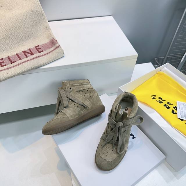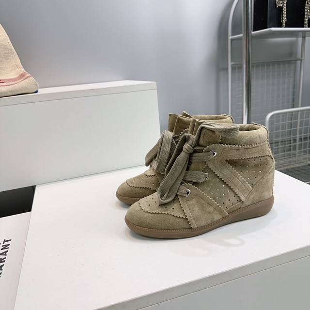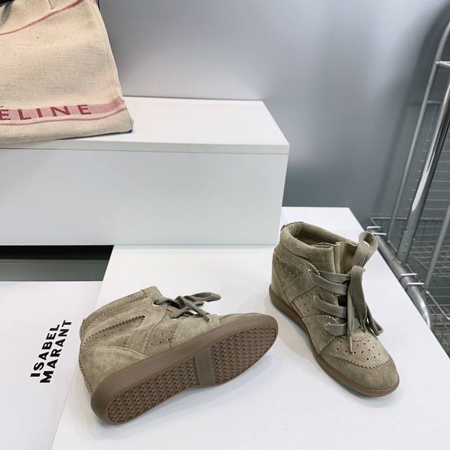 高品质出厂 !顶级品质 Isabel Marant 伊莎贝尔2025Ss秋冬新款经典内增高冲孔系带高帮休闲鞋小短靴! 超级有高级感上脚超好看 关键超级舒适脚感一点都不挑人Chic到爆 买就对了,四季可搭配单品! Y版开发面料Zp颜色一致、中底、鞋底全部是Y版开发的 鞋面原版定制进口牛反绒 内里垫脚进口水染羊皮 原版开模橡胶大底 码数:35-40 40定做不退换 配全套包装