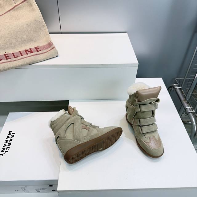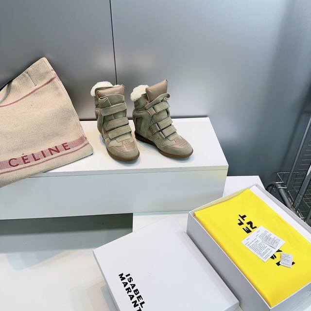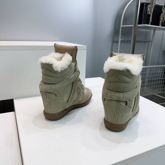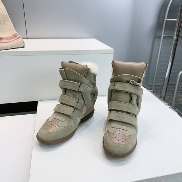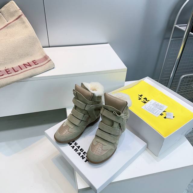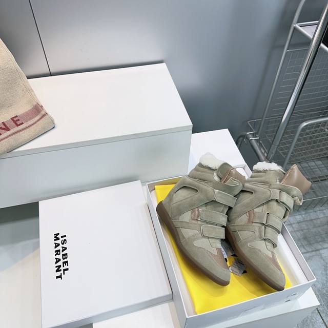 高品质出厂 !顶级品质 Isabel Marant 伊莎贝尔2025Ss秋冬新款经典内增高魔术贴高帮保暖羊羔毛休闲鞋小短靴毛毛内里雪地靴! DDD 超级有高级感上脚超好看 关键超级舒适脚感一点都不挑人Chic到爆 买就对了!秋冬百搭时尚又保暖! DDD Y版开发面料Zp颜色一致、中底、鞋底全部是Y版开发的 DDD 鞋面原版定制进口牛反绒+头层牛皮 DDD 内里垫脚进口羊羔毛 保暖舒适 DDD 原版开模橡胶大底 DDD 码数:35-40 40定做不退换 DDD 配全套包装 DDD