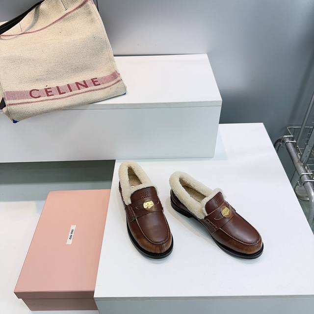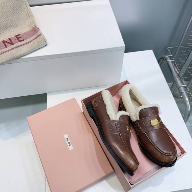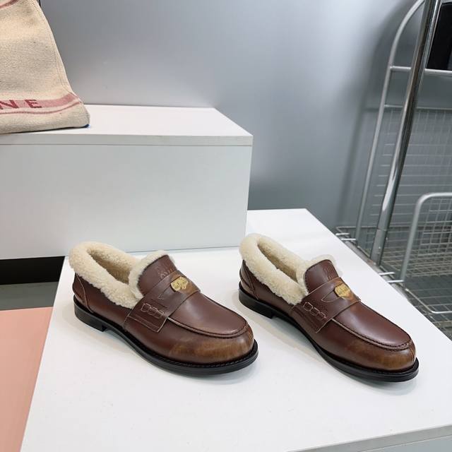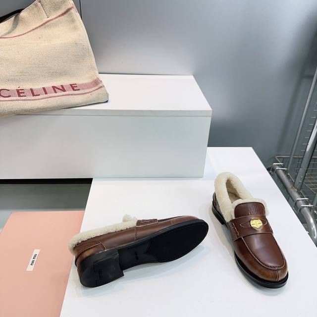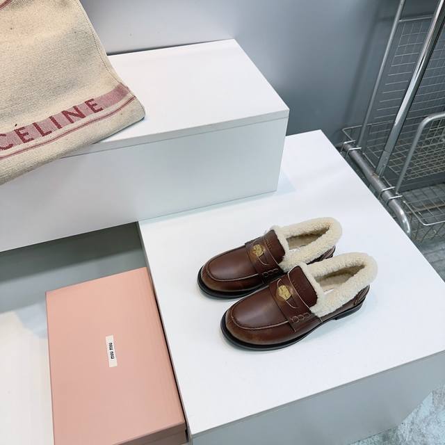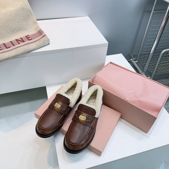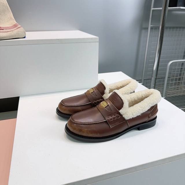 高品质出厂 !顶级品质 Miumiu缪缪25Ss秋冬新款钱币款羊毛保暖棉鞋单鞋乐福鞋毛毛包子鞋!100%纯羊毛乐福豆豆鞋 走秀新款 秋冬开车小姐姐的福音 复古时尚 简约高级 随意搭配 上脚非常舒适 而且超级保暖!鞋面采用金币和压花徽标Logo彰显别具一格的经典格调! DDD 鞋面采用进口牛反绒 小牛皮 DDD 内里垫脚羊卷毛 DDD 原版开模橡胶大底,防滑耐磨! DDD 码数:35-41 40 41定做不退换 DDD 配原版包装 DDD