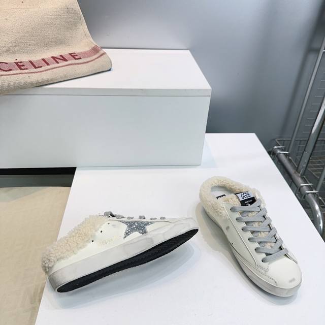 高品质出厂 !顶级品质Ggdb小脏鞋羊毛里星星羊羔毛毛毛鞋半拖小白鞋!打破传统审美,小脏鞋做到了!明星私服上脚示范 就是这么百搭 ! 鞋面原版定制小牛皮 内里进