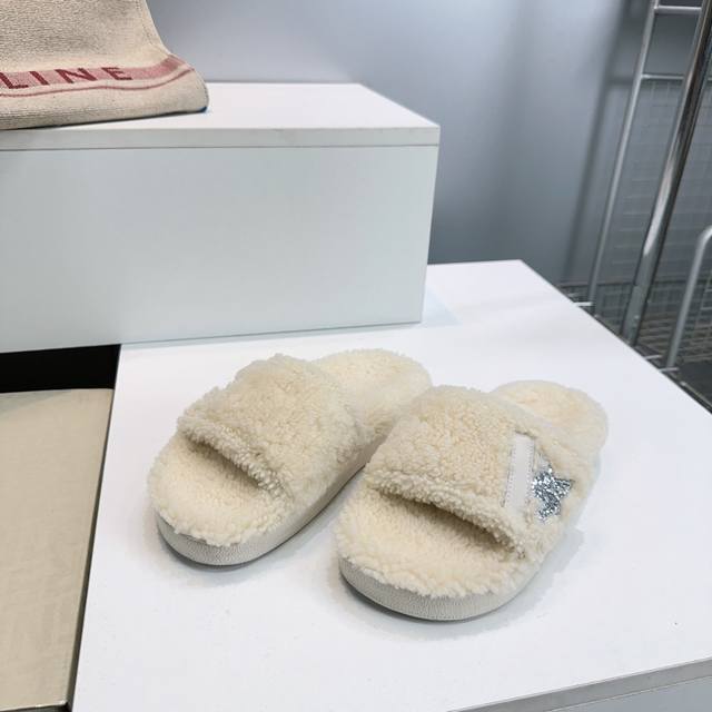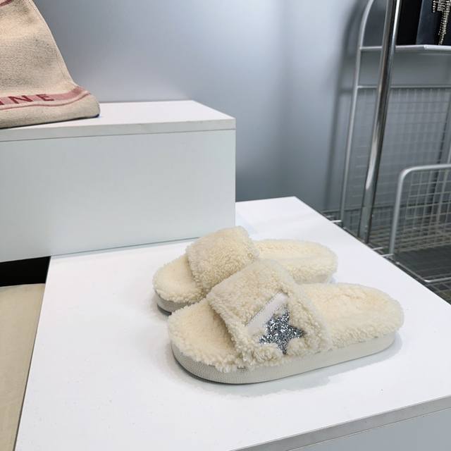高品质出厂 !顶级品质Ggdb 25秋冬新品休闲保暖羊羔毛星星小脏鞋平底毛毛拖鞋 百搭两穿休闲鞋 追求“完美的不完美”、品牌标志性的Lived-In 岁月留痕,做 日处理和独特的星星,是意大利手作工艺与经典外观的完美结合,不仅好穿辨识度高,表达了一种真实自由的态度,不刻意去追求一尘不染,随性不羁的痕迹反而更舒适自在 Material 材质 鞋面采用进口澳洲羊羔毛 内里垫脚进口澳洲羊羔毛 原版开模橡胶大底 码数:35-40 40定做不退换 配原版包装