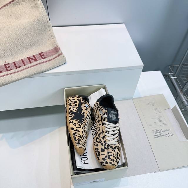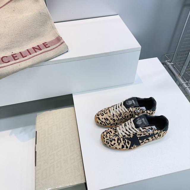 高品质出厂 !顶级品质Ggdb 25秋冬最新款阿甘休闲薄底德训鞋小脏鞋运动鞋! 搭配牛仔裤、连衣裙、西装裤都适配,日常通勤或周末出游都能穿,越穿越有味道。 面料采用纯进口丝光牛皮、牛反绒、豹纹马毛,手感绝了! 定制纯棉毛巾布拼小牛皮内里,贴脚又软乎,穿再久都不闷脚! 橡胶组合大底,100%橡胶材质自带出色耐磨性,搭配品牌标志性琥珀色外观和星星图案 这种手感和质感都区别于那些市面百来块的东西!手工做旧处理,自带高级感! 码数:35-40 40定不退换 配原版包装