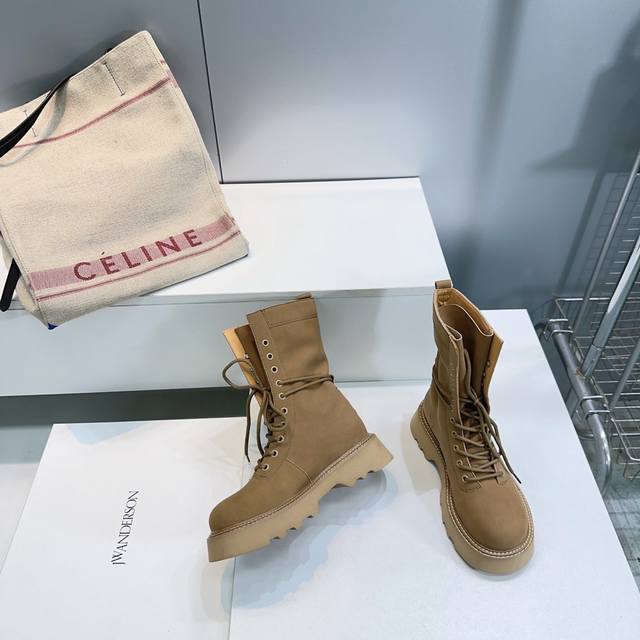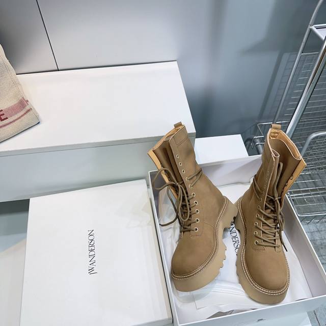 高品质出厂 !顶级品质Jw Anderson 25Ss秋冬潮牌新款松糕厚底马丁靴短靴!英国小众品牌独特而不夸张的设计、不易撞款、每款鞋子都足以引领潮流、个性是J.W.的重要标示注入摩登基因 、探寻多元个性态度、以双色设计与衬垫细节为特色 颇具辨识度、极细高跟活力碰撞 玩趣灵感足间尽现 绝对是秋冬搭配单品首选! 鞋面采用原版进口反绒牛皮 内里垫脚水染牛皮 意大利开模回弹发泡组合橡胶大底! 码数:35-41 40 41定做不退换 配原版包装