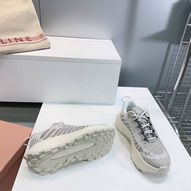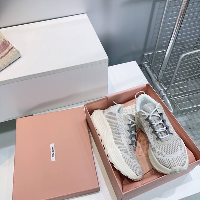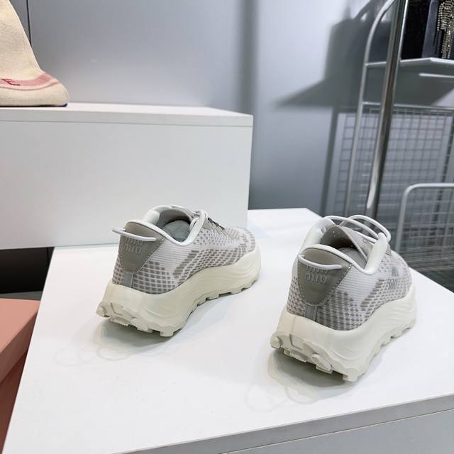 高品质出厂 !顶级品质Miu Miu 缪缪25春夏新款美式厚底老爹鞋运动鞋时装休闲鞋! 颜值担当火爆款运动鞋 不得不入的一款~时尚,高级 随意搭配上脚非常舒适,年度必入款 最新走秀款运动老爹鞋国内外博主刷爆的一款,小红书种草系列 复古又时髦上脚美炸了厚底运动板鞋设计,极具辨识度的鞋舌,打造佛系甜美的休闲风~~上脚气场十足随意搭配 主打一个时尚! 大底高度6Cm 妥妥的增高神器 ! 鞋面采用原版定制织布 内里垫脚透气网布 原版开模发泡大底 轻便舒适 码数:35-40 40定不退换 配原版包装