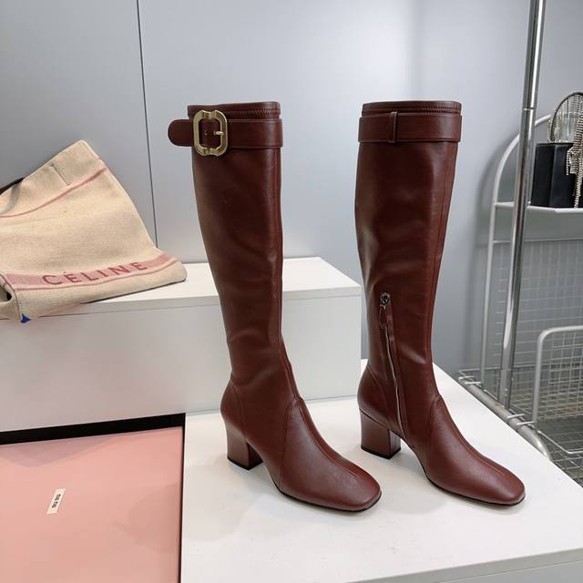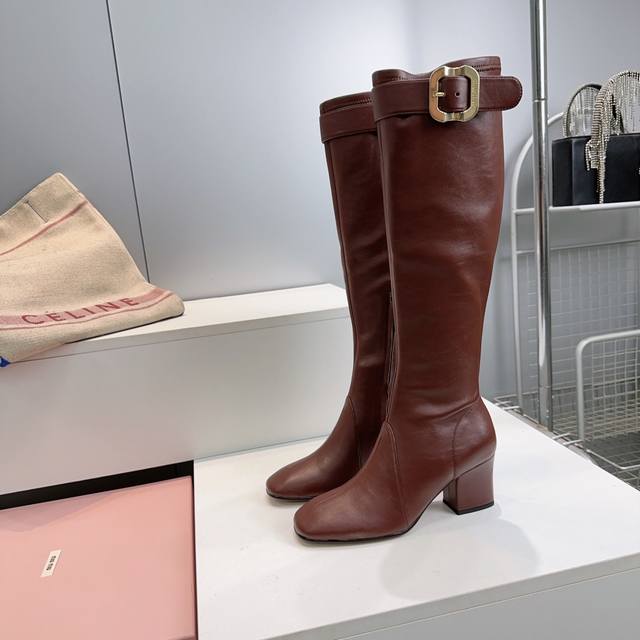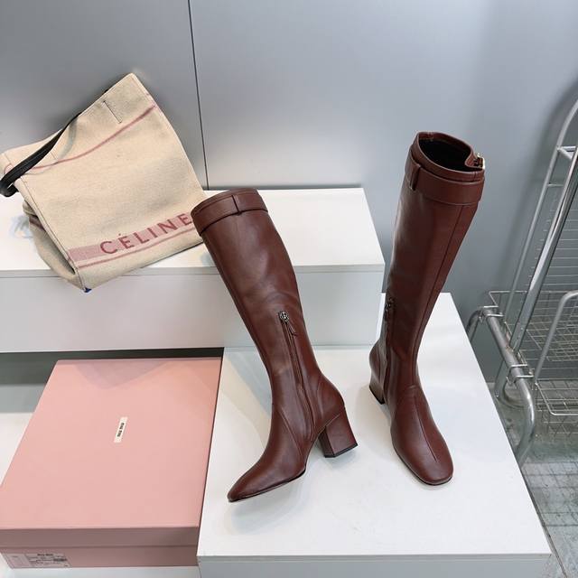 高品质出厂 !顶级品质Miumiu缪缪2025秋冬季新款圆头粗跟弹力长靴高靴今年官网主推的爆款 Miu家一直以来都是以少女心Blingbling著称,这款秋冬靴子也不例外!鞋型优雅,简单大气!粗跟设计拉伸腿部线条,让爱美的小姐姐们都能轻松驾驭!绝对这季秋冬的必备单品 DDD 鞋面采用弹力皮 DDD 内里垫脚羊皮 DDD 意大利进口真皮大底 DDD 跟高:约6Cm DDD 码数:35-40 40定做不退换 DDD 配原版包装 DDD