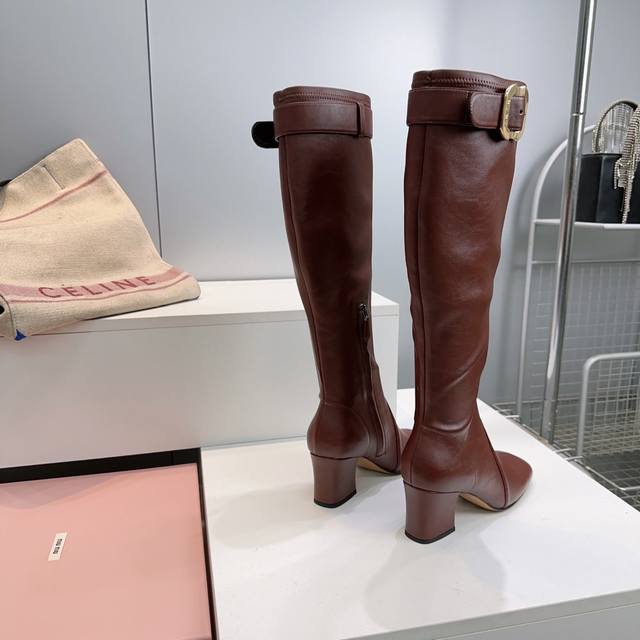 高品质出厂 !顶级品质Miumiu缪缪2025秋冬季新款圆头粗跟弹力长靴高靴今年官网主推的爆款 Miu家一直以来都是以少女心Blingbling著称,这款秋冬靴