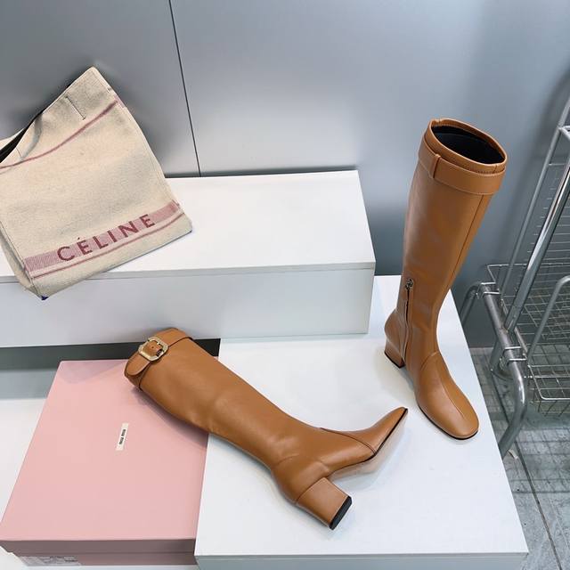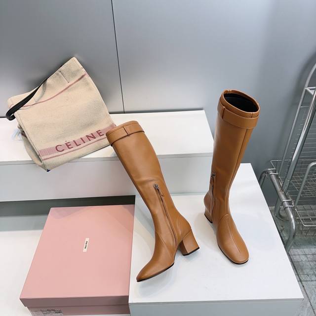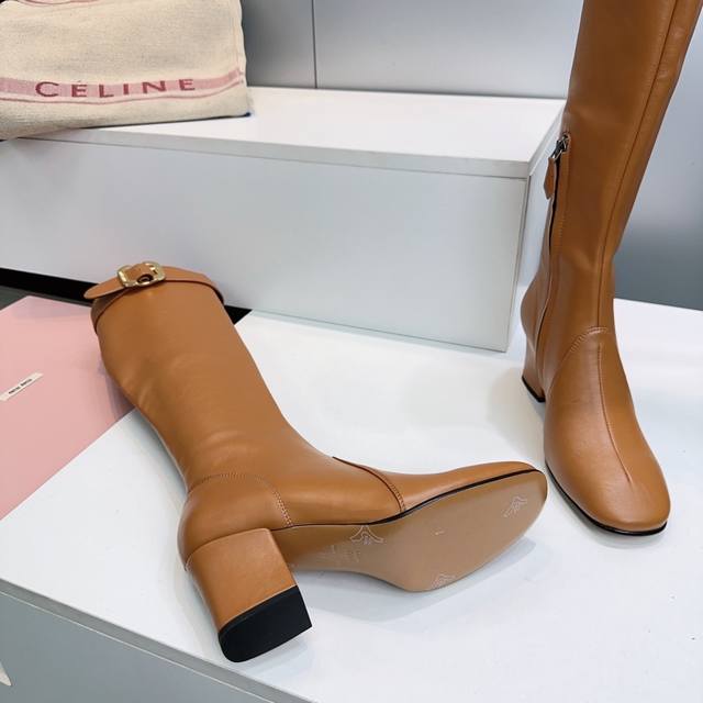 / 高品质出厂 !顶级品质Miumiu缪缪2025秋冬季新款圆头粗跟弹力长靴高靴今年官网主推的爆款 Miu家一直以来都是以少女心Blingbling著称,这款秋冬靴