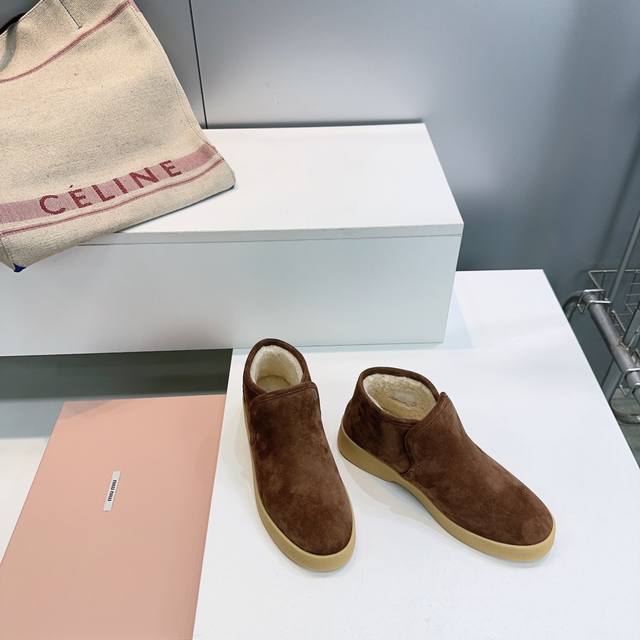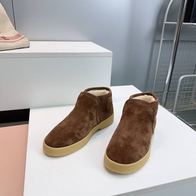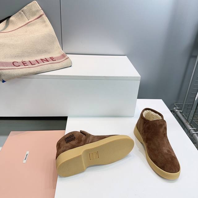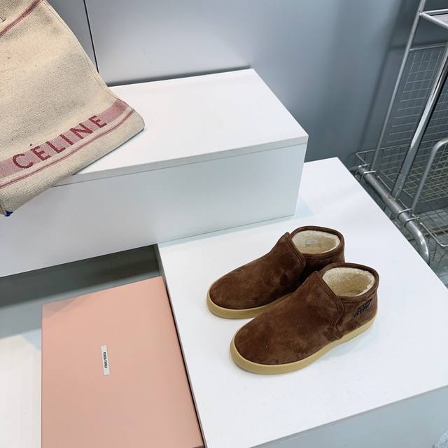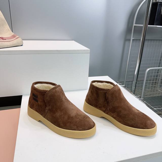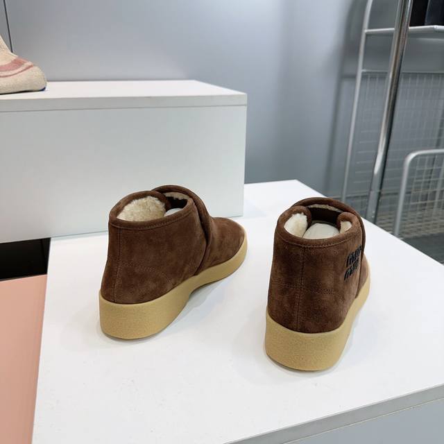 高品质出厂 !顶级品质Miumiu缪缪25Ss秋冬最新羊毛款保暖雪地靴圆头简易短靴低帮裸靴!蠢萌蠢萌的可爱到爆 Miu家冬季保暖雪地靴 果然没让人失望, 一眼就