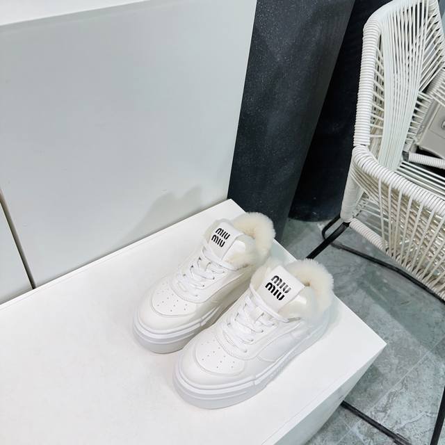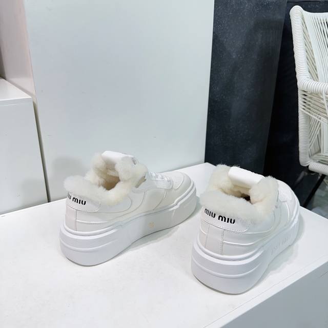 高品质出厂 !顶级品质Miumiu25Ss秋冬新款小白鞋!来感受财阀千金的Miumiu毛毛小脏鞋休闲鞋! 新款保暖羊毛休闲鞋板鞋!一眼看中的毛绒绒复古小白鞋 奶里奶气的 秋冬的氛围感立刻拉满,羊羔毛超暖和,颜值兼备 Miu太懂女人心啦!!! 喜欢甜美温柔的宝子快去冲冲~ 减龄神器敲优雅敲可爱 瞬间拉长身高,显腿细 鞋面采用原版头层小牛皮,手工擦色做旧!质感原版一致! 内里垫脚采用进口顶级羊羔毛,触感柔软细腻!舒适保暖! 与灰色小腿袜真的很配哦 底厚:约4Cm 码数:34-40 40定做不退换 配原版包装