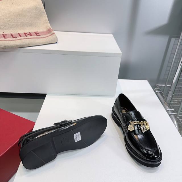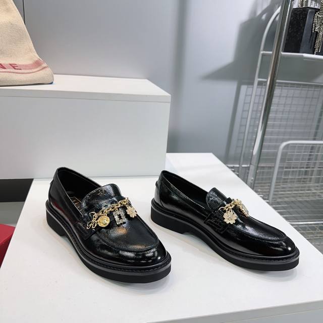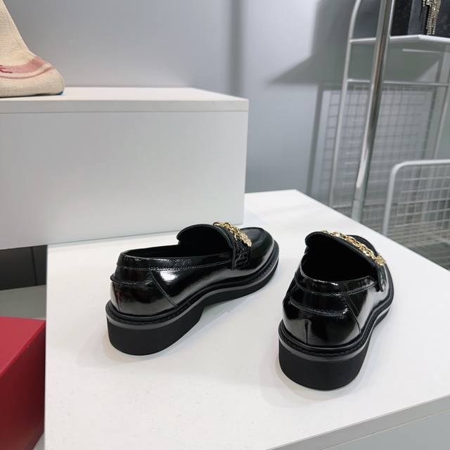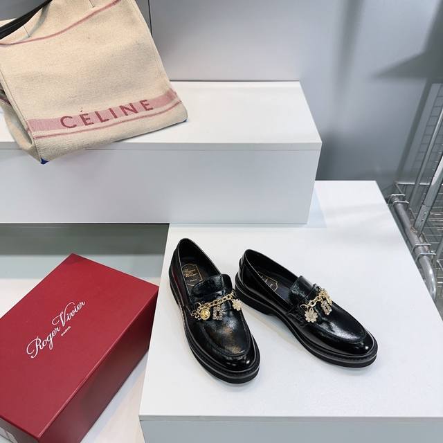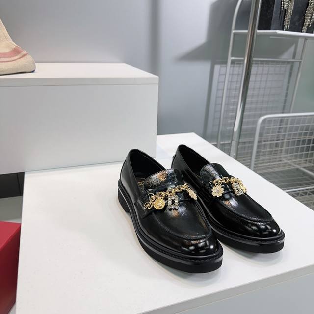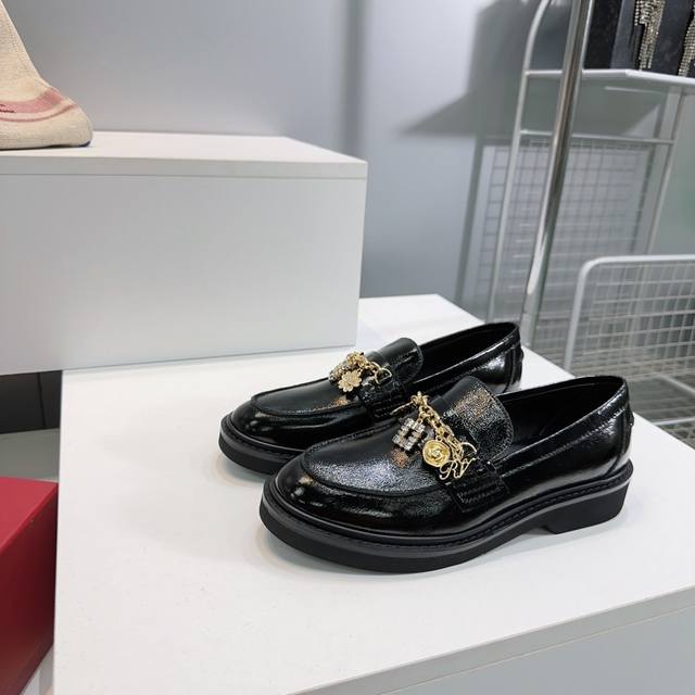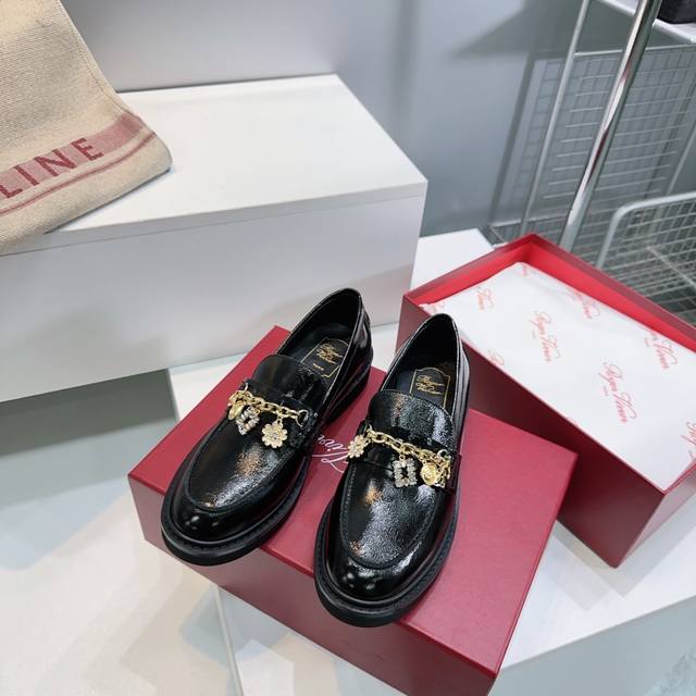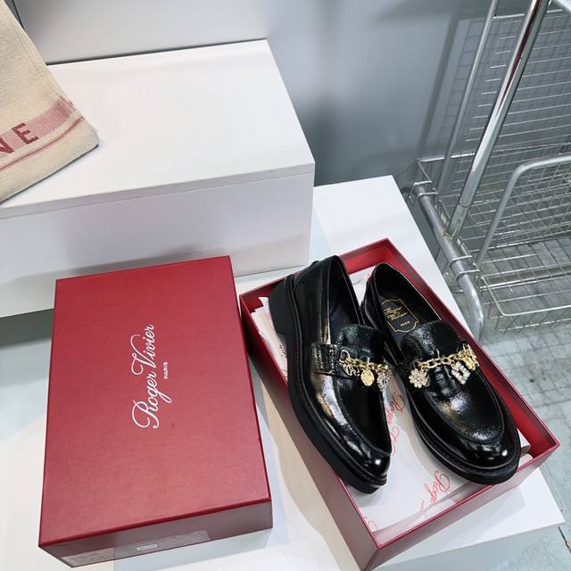 高品质出厂 !顶级品质Roger Vivier Rv 』25秋冬新品平底单鞋乐福鞋! DDD 复古勋徽章,融入现代金属钻链元素,打造复古与摩登并存的时尚美学!搭配闪耀金属饰扣,每一步都散发高级质感! DDD 3.5Cm鞋底设计,让你的身姿更加曼妙挺拔,展现女性与生俱来的魅力,大女主们 Bi需品! DDD 鞋面采用进口小牛皮漆皮 开边珠 DDD 内里垫脚羊皮 DDD 原版开模橡胶大底 DDD 码数:35-40 40定不退换 DDD 原原版包装 DDD