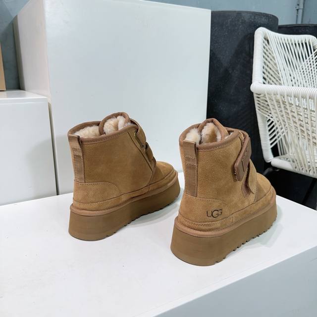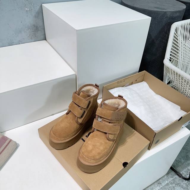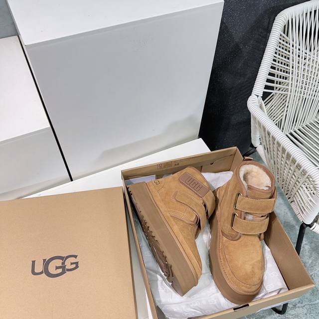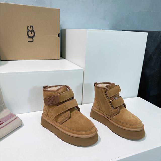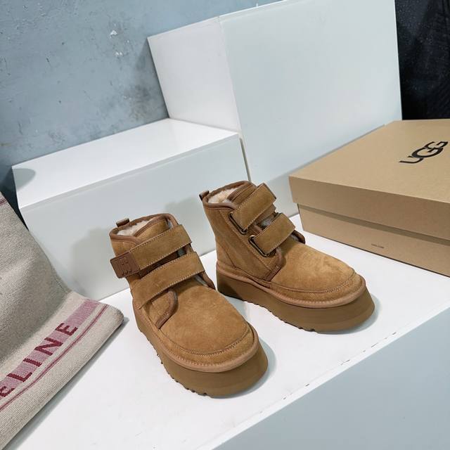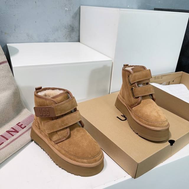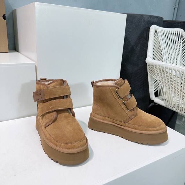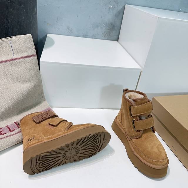 高品质出厂 !顶级品质Ugg油鸡鸡2025Ss秋冬新款厚底双魔术贴时装羊羔毛雪地靴 全羊皮毛一体,保暖好穿! 出街回头率最高的就是它,厚底5公分,厚底增高更Fi