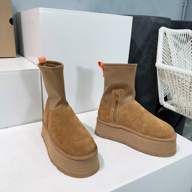 高品质出厂 !顶级品质Ugg油鸡鸡2025Ss秋冬新款时装休闲厚底雪地靴!颜值超高! 款式新颖百搭范,靴筒莱卡布 Spr设计经典传承系列向温暖舒适致敬让经典随行,多种搭配兼具时尚温暖,带来绚丽好心情,上脚非常百搭时尚范! 鞋面采用原版皮毛一体搭配弹力莱卡布靴筒优选质感鞋面 易打理 让舒适与时髦一并拿捏, 内里垫脚进口羊糕毛,保真羊毛保暖舒适! 原版发泡组合大底!轻便耐磨! 底厚:约7Cm 码数:35-41 40 41订做不退换 配原版包装
