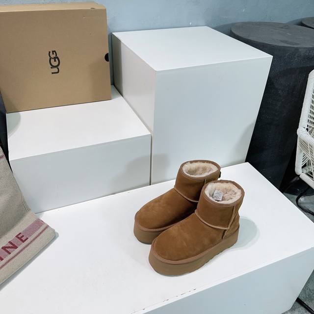 高品质出厂 !顶级品质Ugg油鸡鸡25Ss秋冬新款经典Mini厚底毛毛雪地靴 被Bella、Gigi种草的一款,火的爆炸,搭配一双堆堆袜,又高级又时髦,纯纯的美