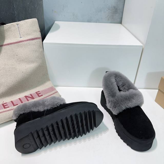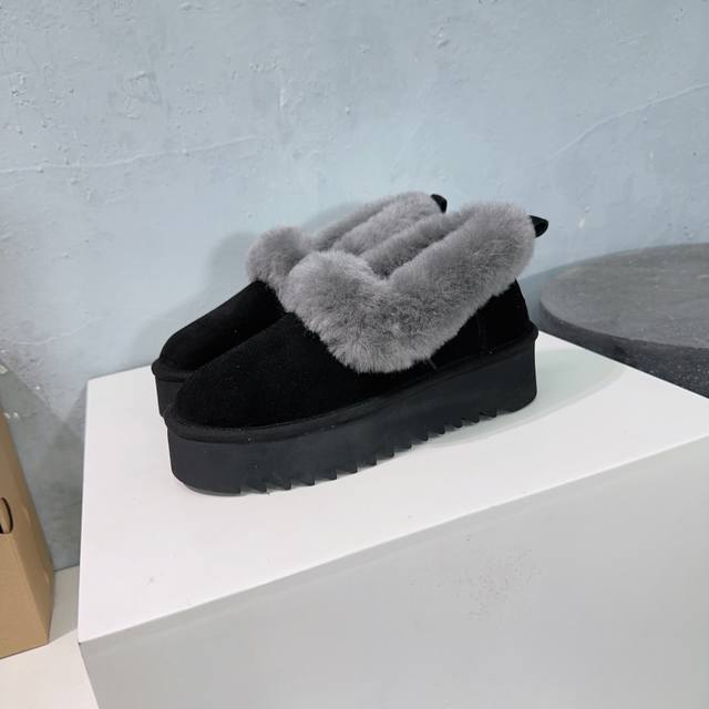 高品质出厂 !顶级品质Ugg油鸡鸡25Ss秋冬新款Mini厚底毛毛雪地靴 被Bella、Gigi种草的一款,火的爆炸,搭配一双堆堆袜,又高级又时髦,纯纯的美式穿搭,厚底尽显大长腿! 隆丰厚实皮毛一体!保真羊皮保暖舒适!Pvc发泡超轻大底,底厚4Cm左右! 码数:35-41 40 41定做不退换 配原版包装
