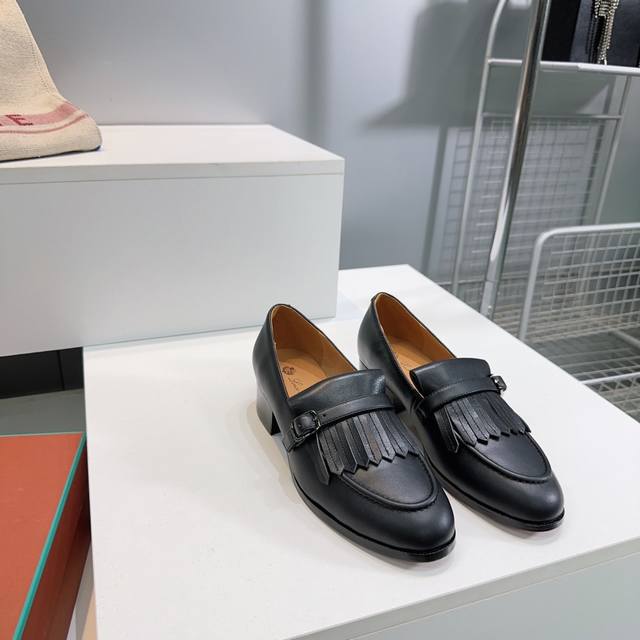 高品质出厂400!小众潮牌Loro Piana诺悠L 早秋新款流苏小牛皮粗跟乐福鞋老钱风复古单鞋! 流苏休闲鞋是对经典设计的隽永诠释,其锥形线条和同色系皮革流苏是其特色所在。它采用牛皮革打造,这种材质以其天然的光泽和结实的结构而著称,勾勒出雕塑般的鞋型轮廓。低调的鞋跟轮廓展露精心编织的脚背。 鞋面采用进口小牛皮 内里垫脚水染牛皮 意大利进口加厚原色真皮大底 跟高:3.5Cm 码数:35-41 40.41定做不退换 配原版包装