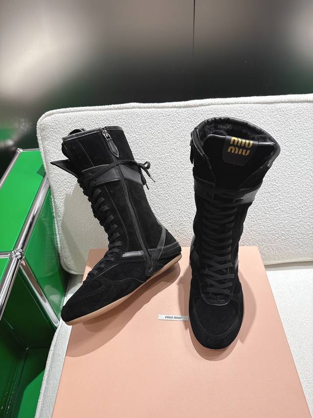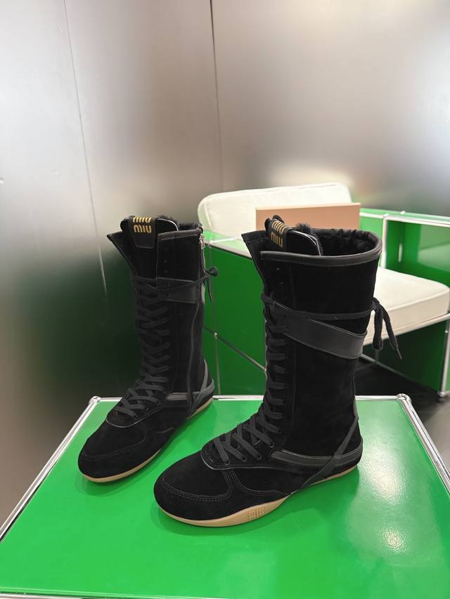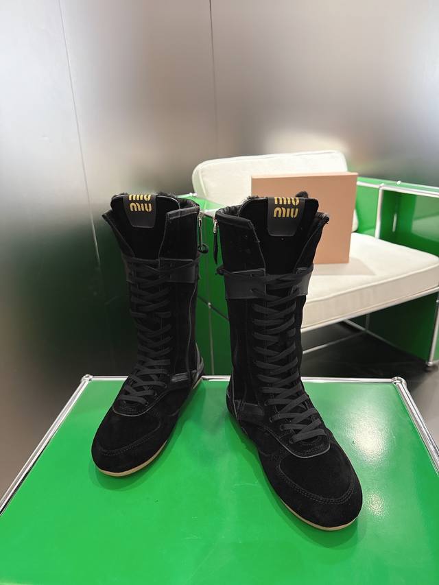 / 高帮 K018 Miu Miu 新款Miumiu 德训 休闲靴 秀场工艺来自Miu Miu系列的细节特写 新季的潮流要素一 与此刻挚爱的概念,多元对撞,传达现代