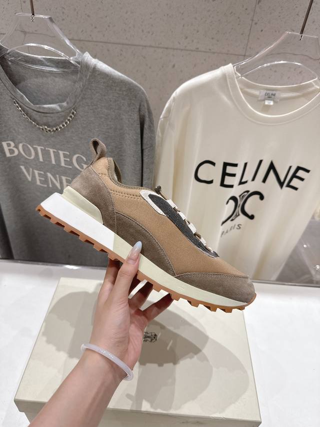 高版本出厂 情侣款 Brunello Cucinelli F059新款Bc系带厚底情侣款休闲运动鞋,市场高版本 Bc是意大利知名品牌,极简主义风格,复古又高级!简约又大气,属于非常耐看的款式!高级百搭之王,脚感很好很舒服!超级百搭!超级耐看!必备款~ 鞋面:进口高丝光牛反绒 内里:进口羊里 大底:原版开模Tpu大底 防滑耐磨 码数:35-45 女40.男45订做不退换